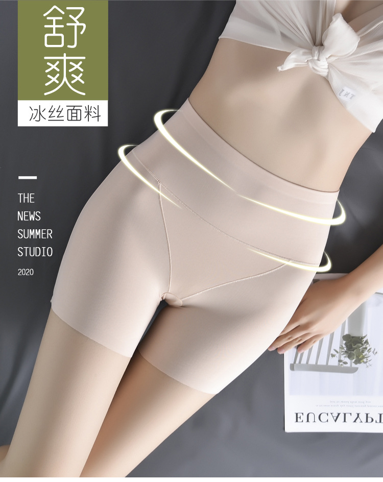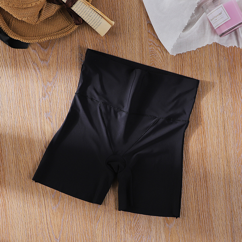 하이 웨이스트 배꼽 계약 아이스 실크 원활한 안전 바지 여성용 안티 노출 비 컬링 5 점 레깅스 여름 얇은 안전 바지