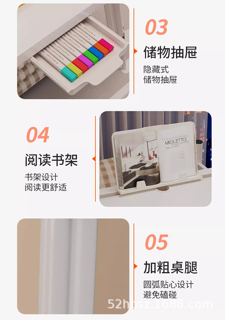 • 스트레이트 플레이트 70*48 흰색 리프팅 코끼리 다리 (카드 슬롯 컵 홀더 + 서랍 + 책장)