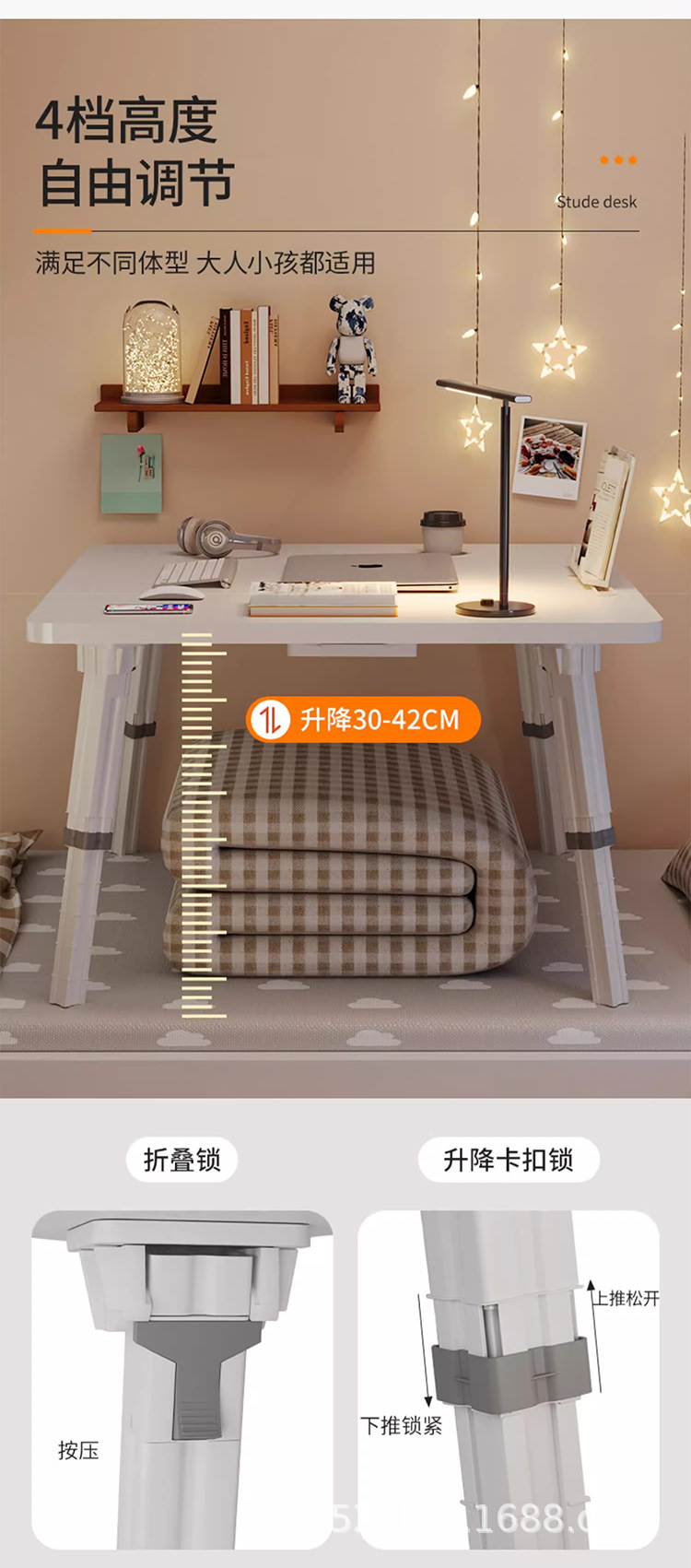 조절 가능한 침대 작은 테이블 컴퓨터 책상 학생 연구 테이블 접이식 테이블 기숙사 책상 어린이 독서 테이블 베이 창