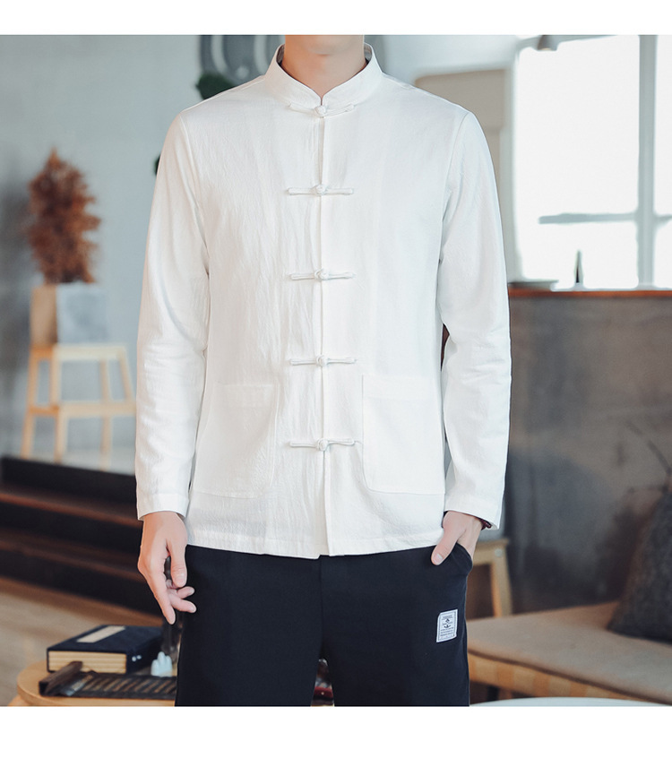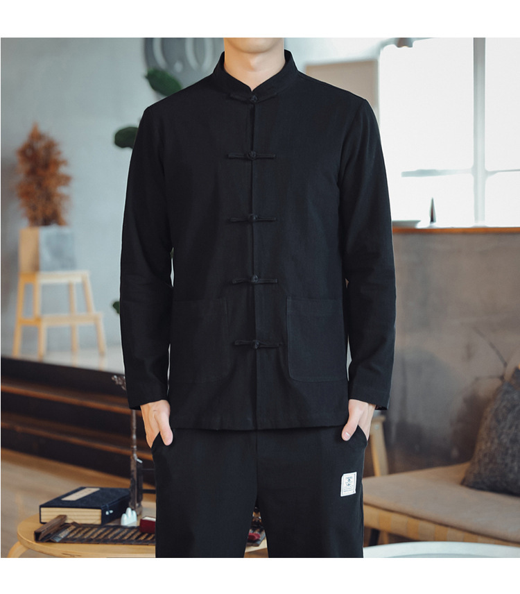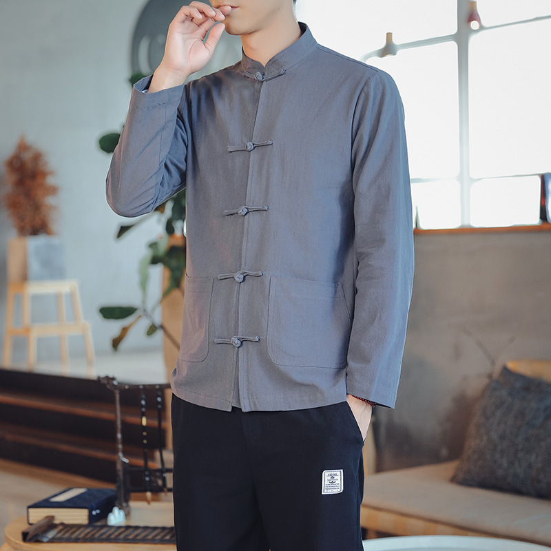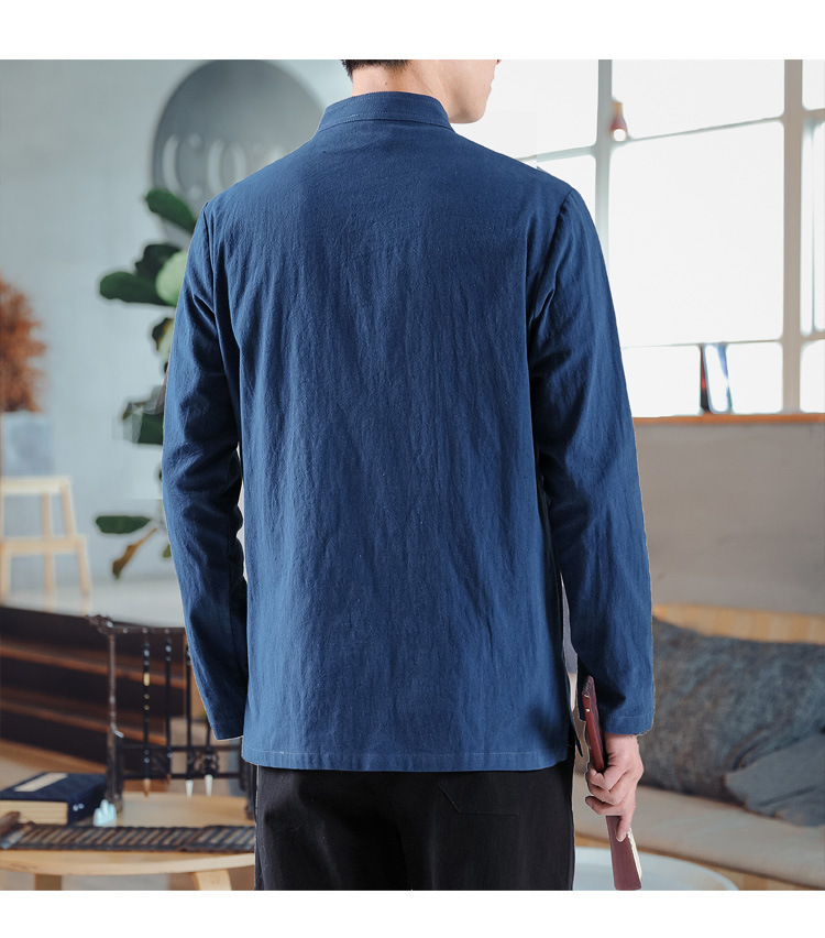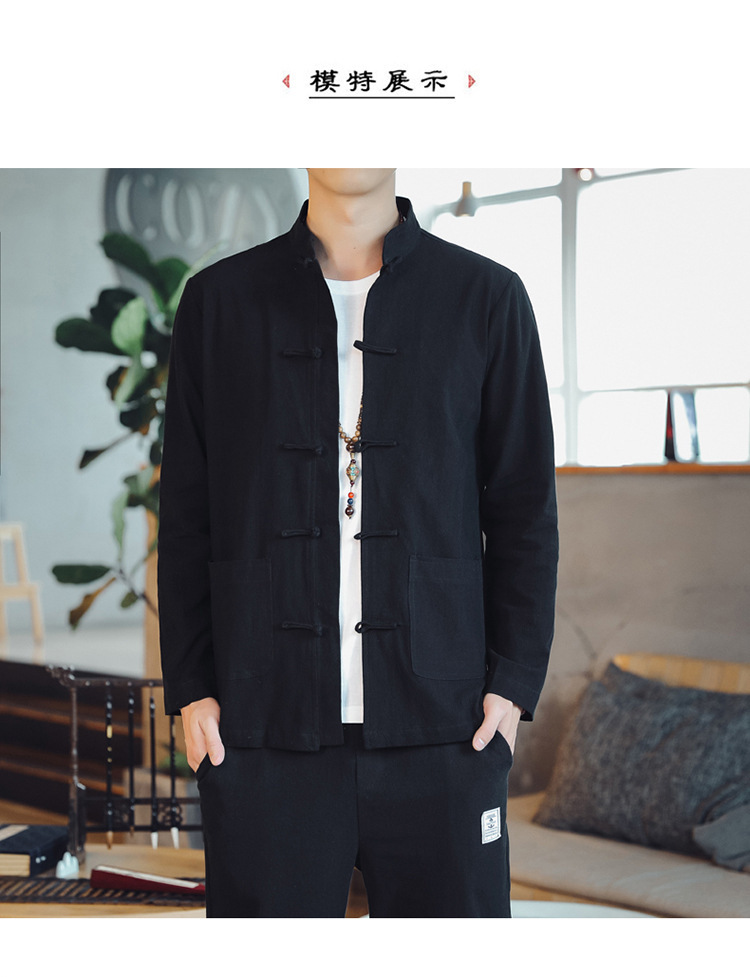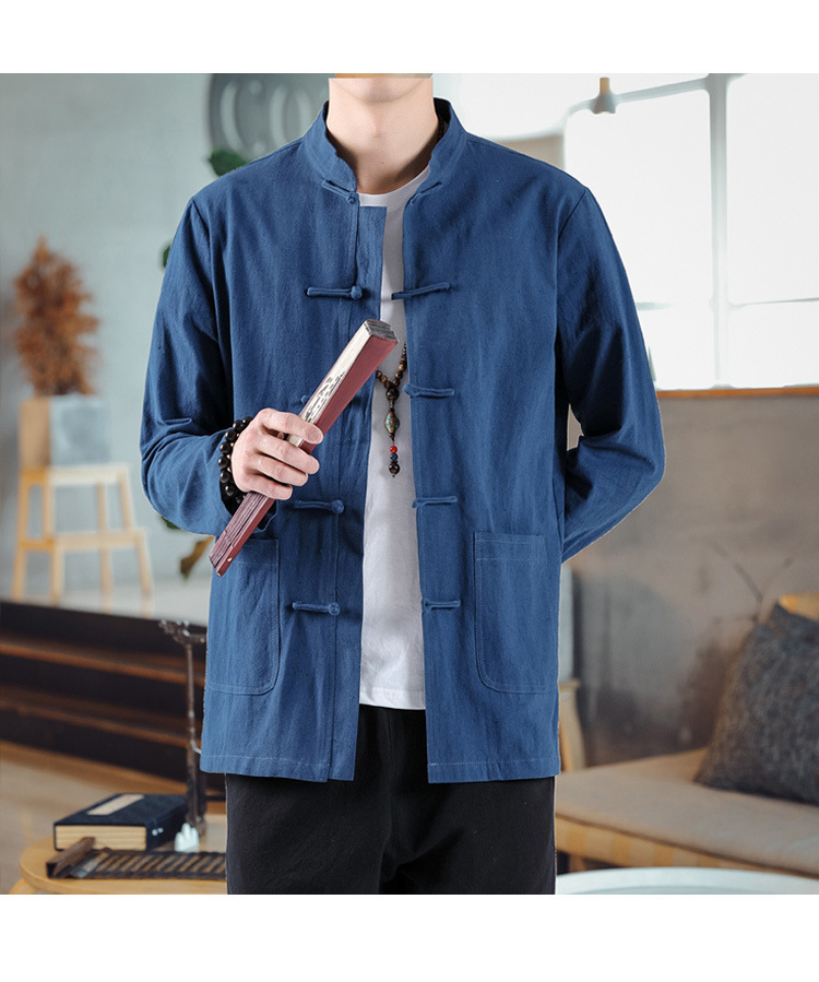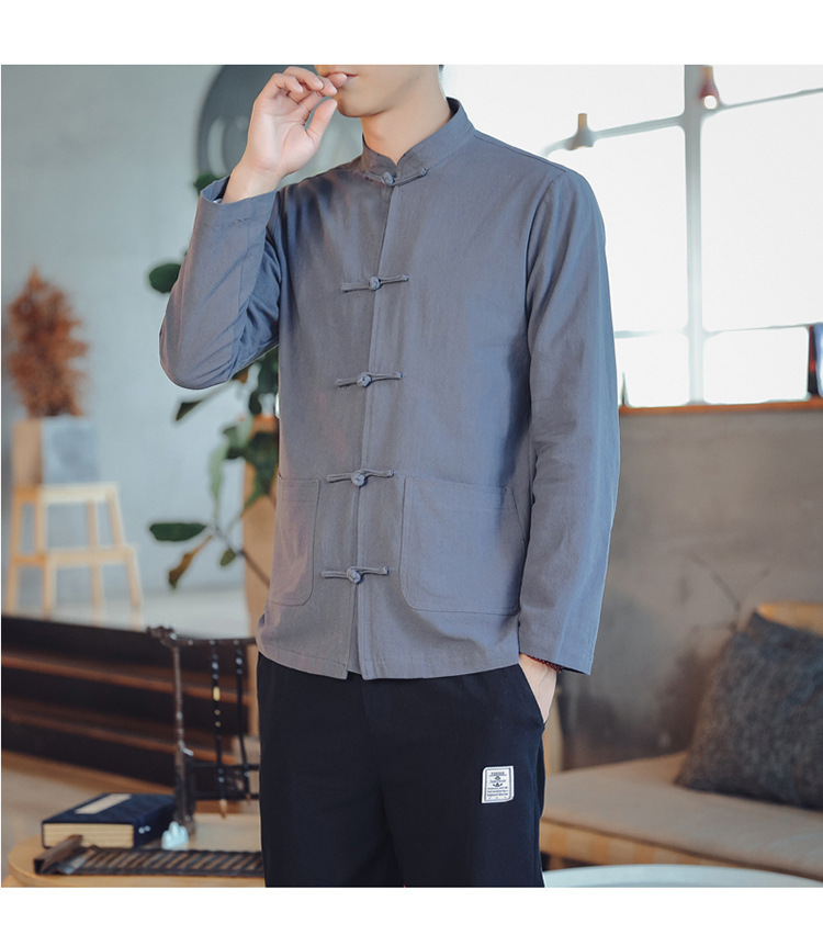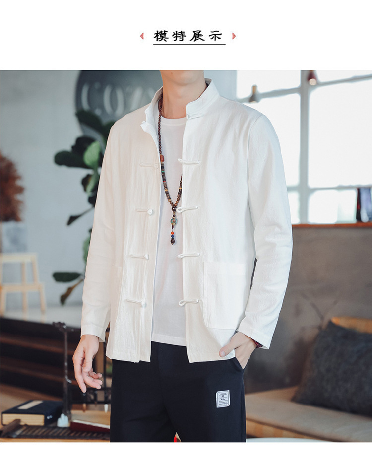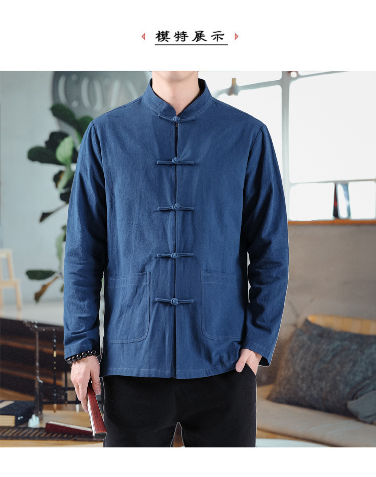 새로운 중국 스타일 린넨 셔츠 남성 중국 스타일 남성 의류 한 요소 플러스 사이즈 코튼 린넨 버클 크로스 컷 가운 한 의류