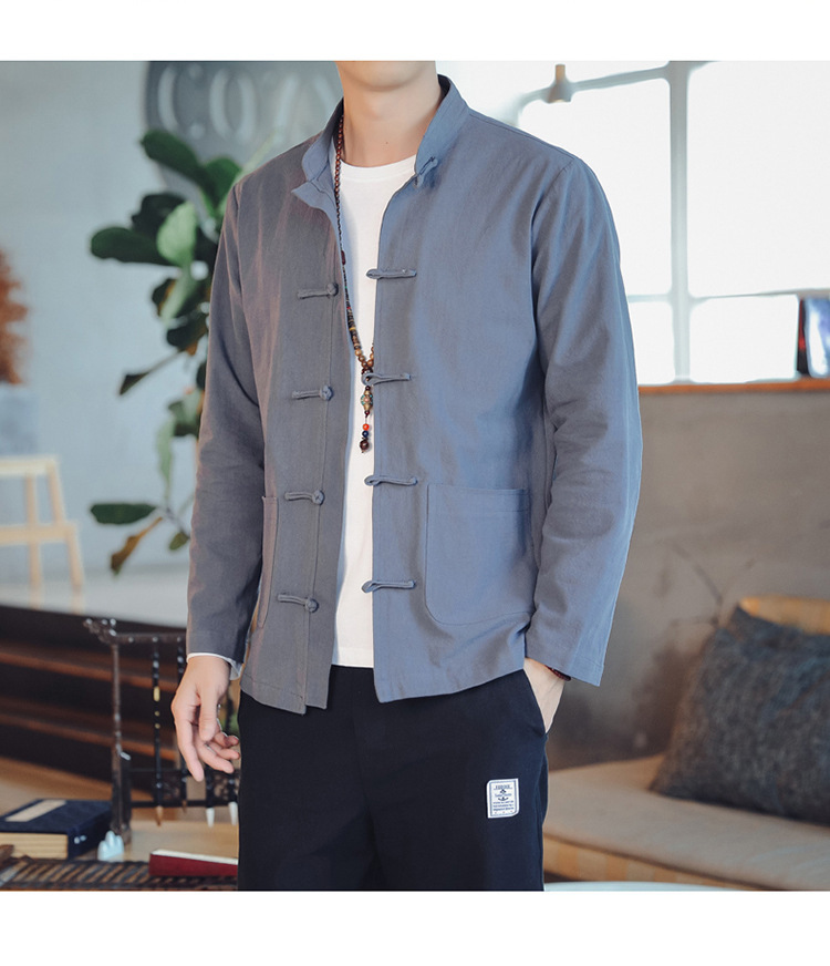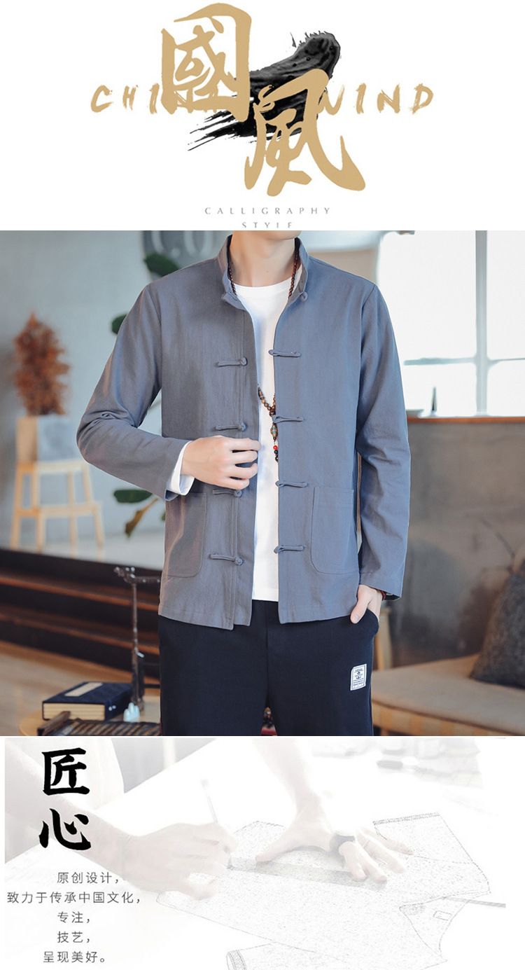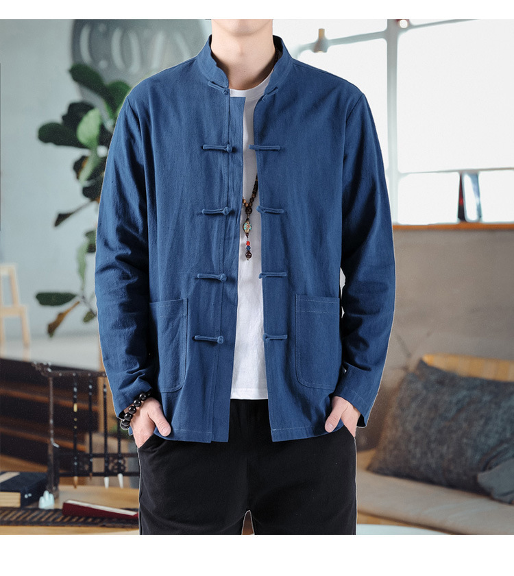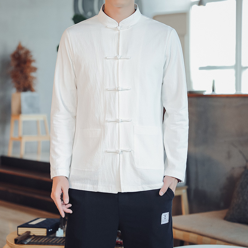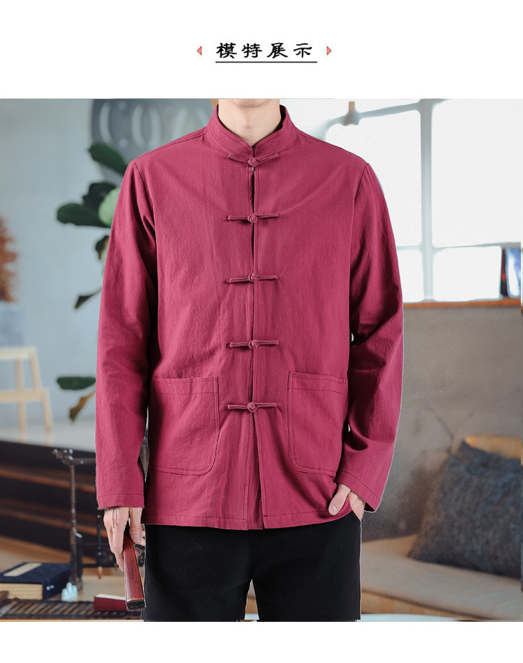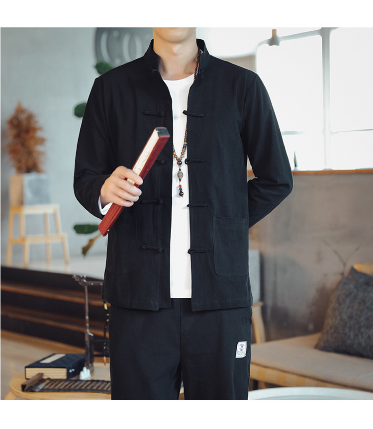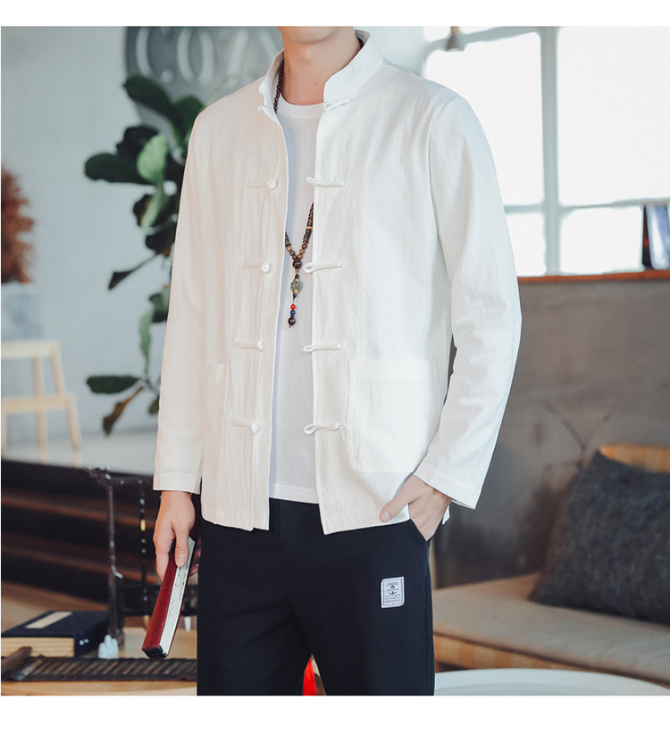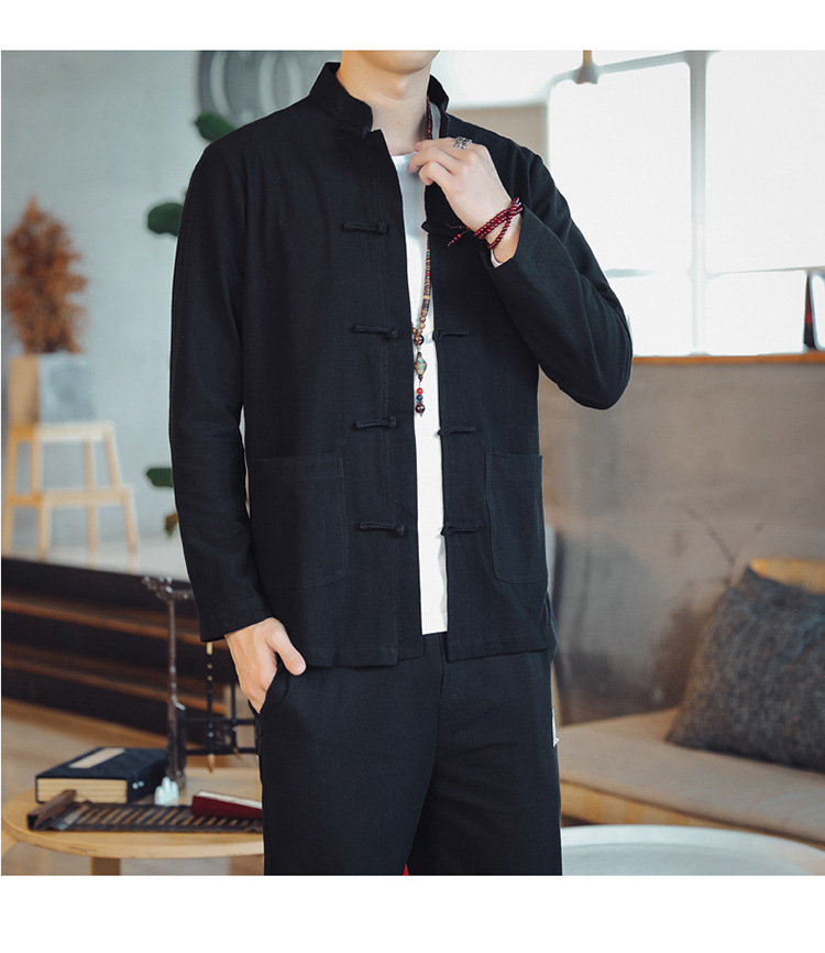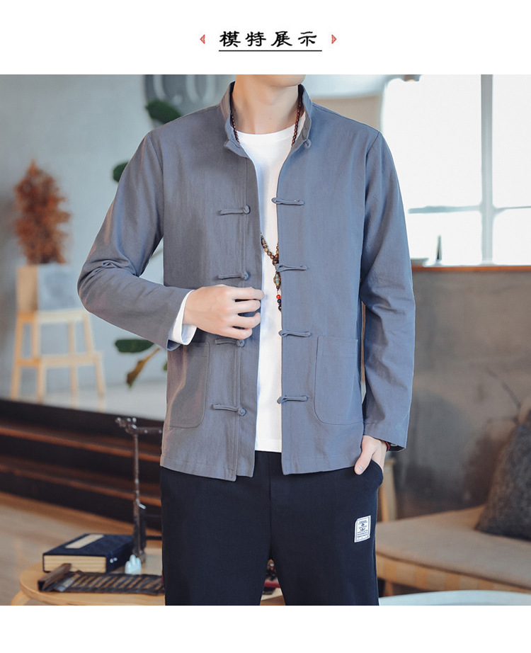 새로운 중국 스타일 린넨 셔츠 남성 중국 스타일 남성 의류 한 요소 플러스 사이즈 코튼 린넨 버클 크로스 컷 가운 한 의류