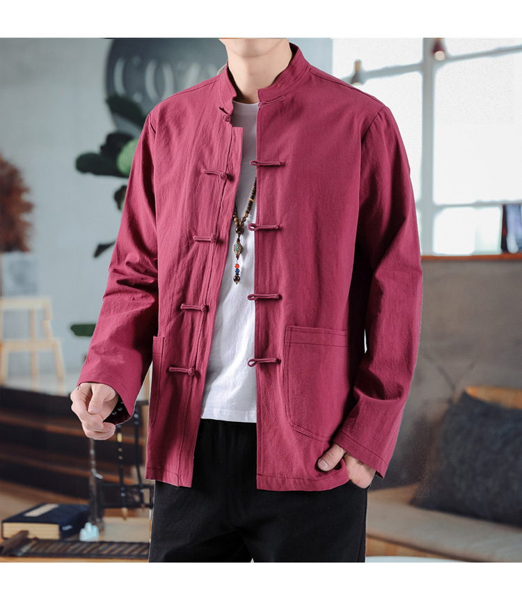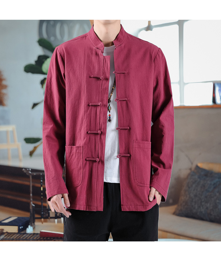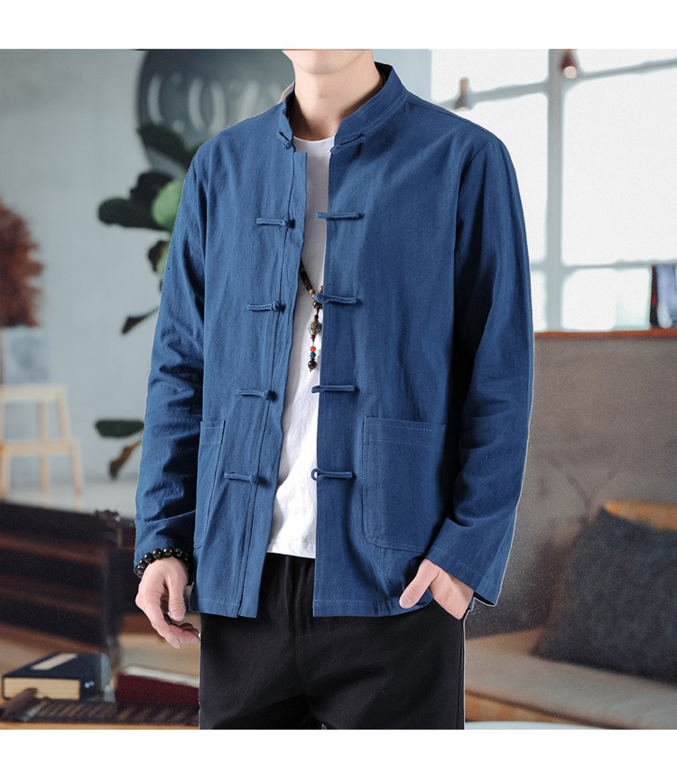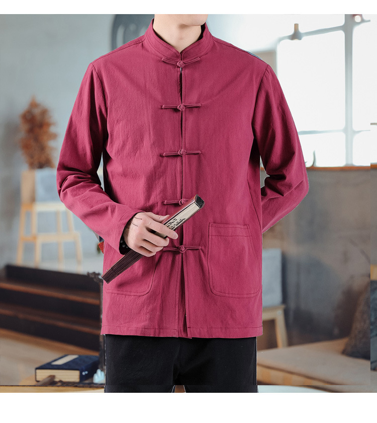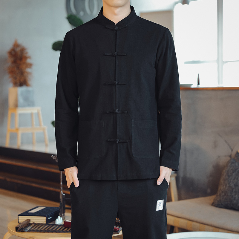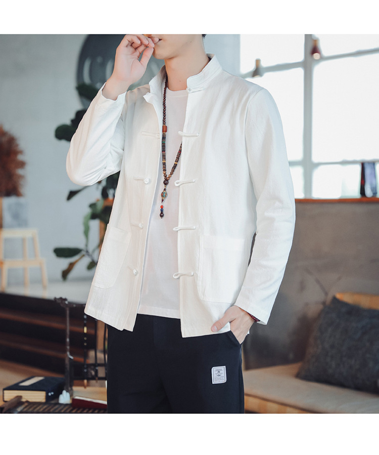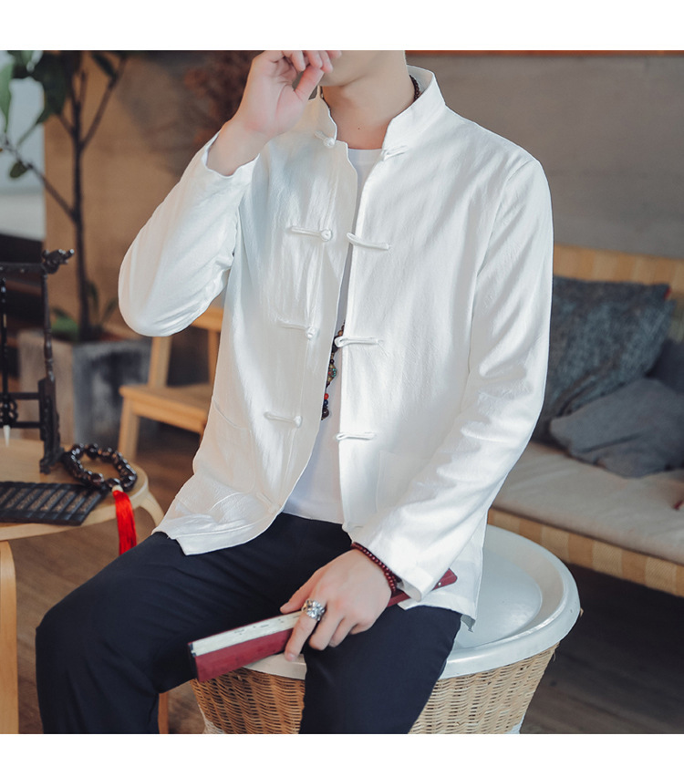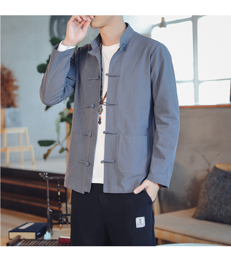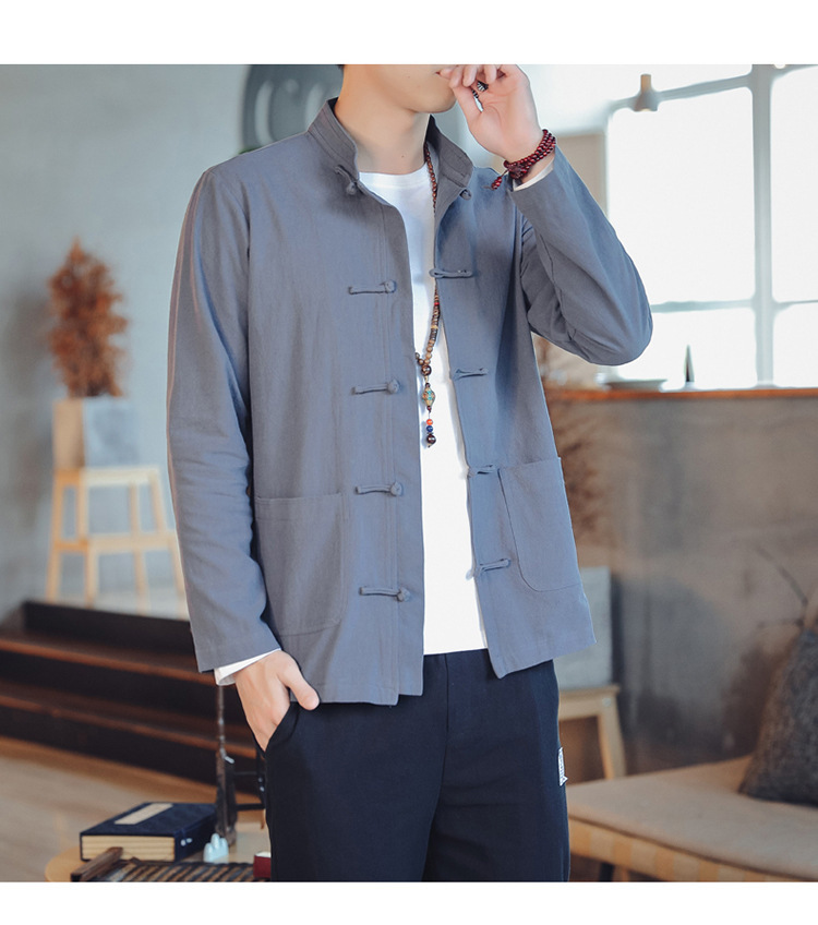 새로운 중국 스타일 린넨 셔츠 남성 중국 스타일 남성 의류 한 요소 플러스 사이즈 코튼 린넨 버클 크로스 컷 가운 한 의류