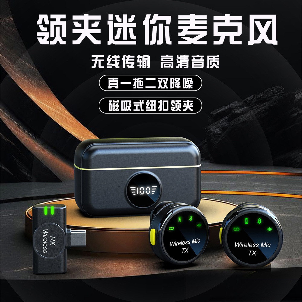 새로운 라운드 자기 흡입 원 드래그 두 버튼 무선 마이크 라이브 사운드 카드 블루투스 녹음 무선 칼라 클립 마이크