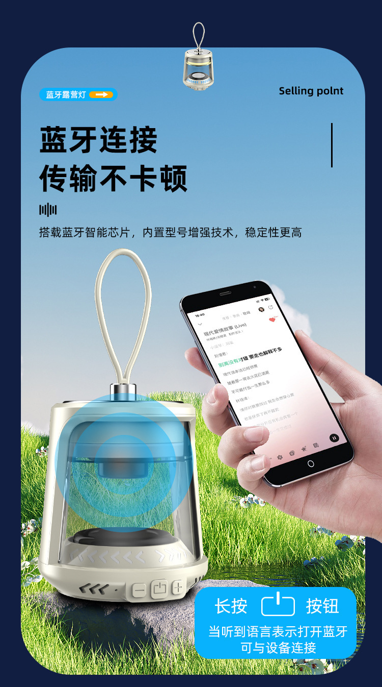 새로운 충전 야외 조명 블루투스 스피커 캠핑 라이트 휴대용 LED 긴 내구성 캠핑 라이트스토어 가기