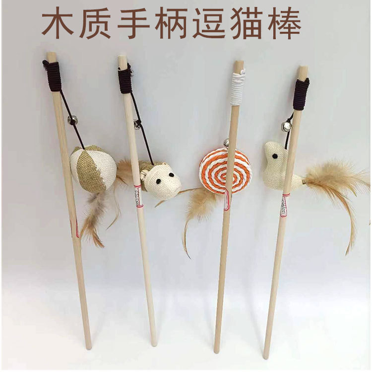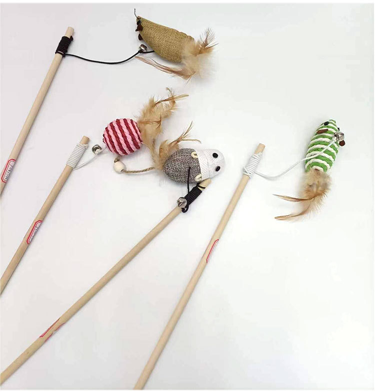 재미 고양이 스틱 재고 도매 국경 고양이 장난감 벨 긴로드 2 색 단색 깃털 강철 와이어 재미있는 고양이 장난감스토어 가기