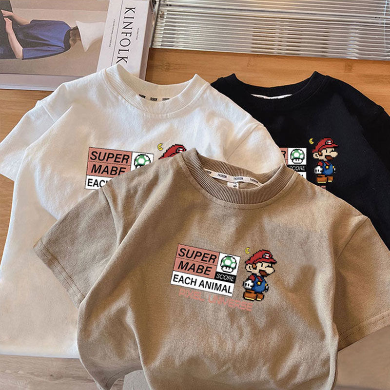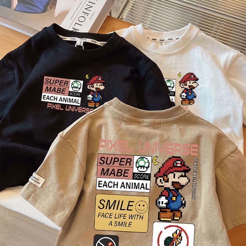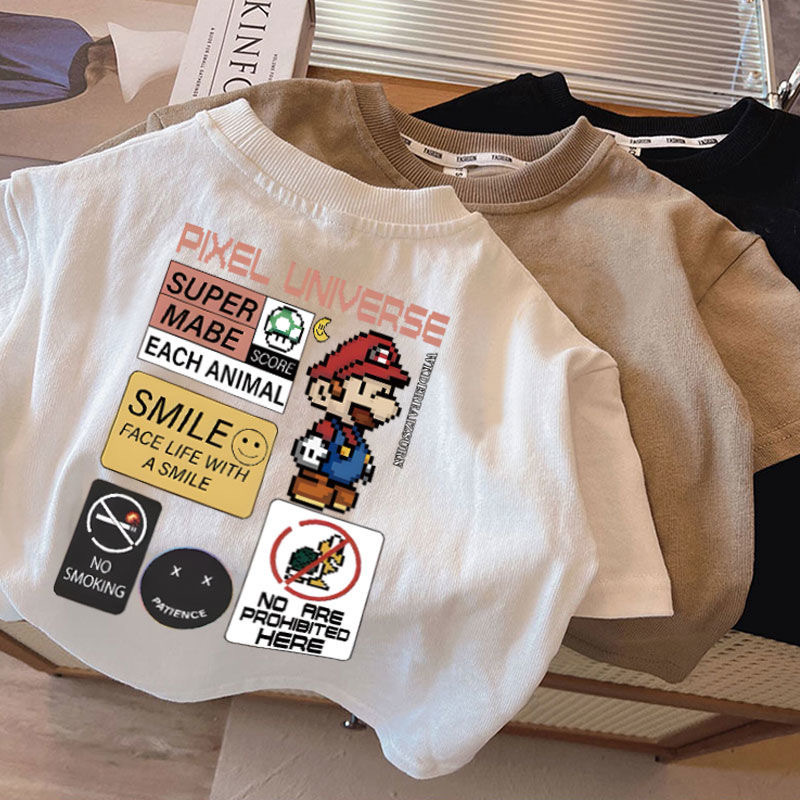 신상 남학생 반소매 티셔츠 순면 새 여름 원피스 어린이 잘 생긴 여름 한식 어린이 반소매 프린트 탑스토어 가기