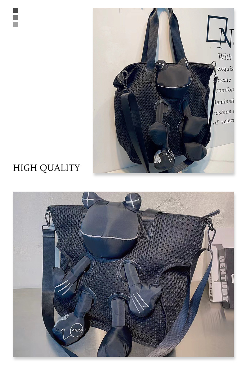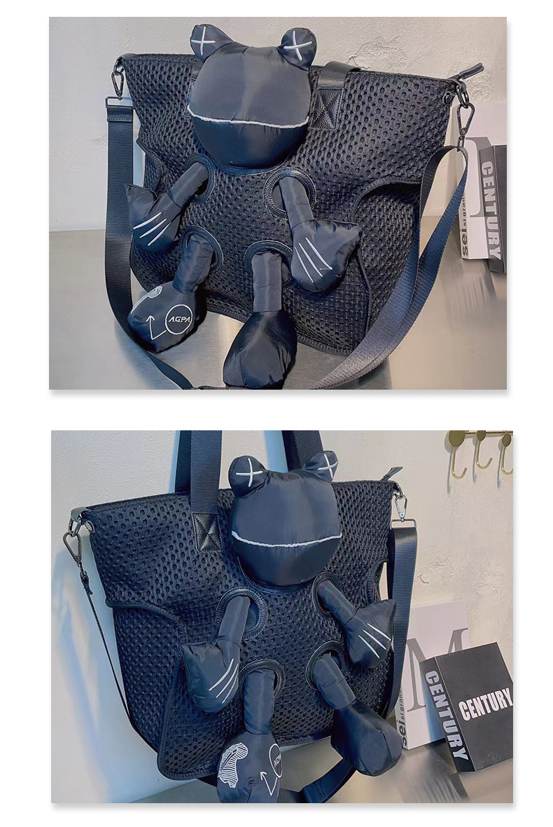 캐주얼 숄더백 새로운 메쉬 토트 백 패션 개구리 인형 가방 대용량 휴대용 메신저 가방 큰 가방 패션스토어 가기