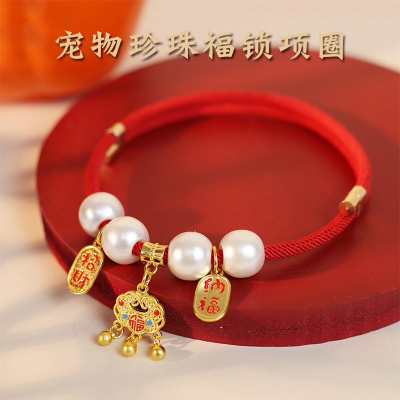 애완 동물 골드 구슬 긴 수명 잠금 침묵 새해 포춘 칼라 색상 보존 고양이 개 귀여운 꼰 로프 목걸이 보석스토어 가기