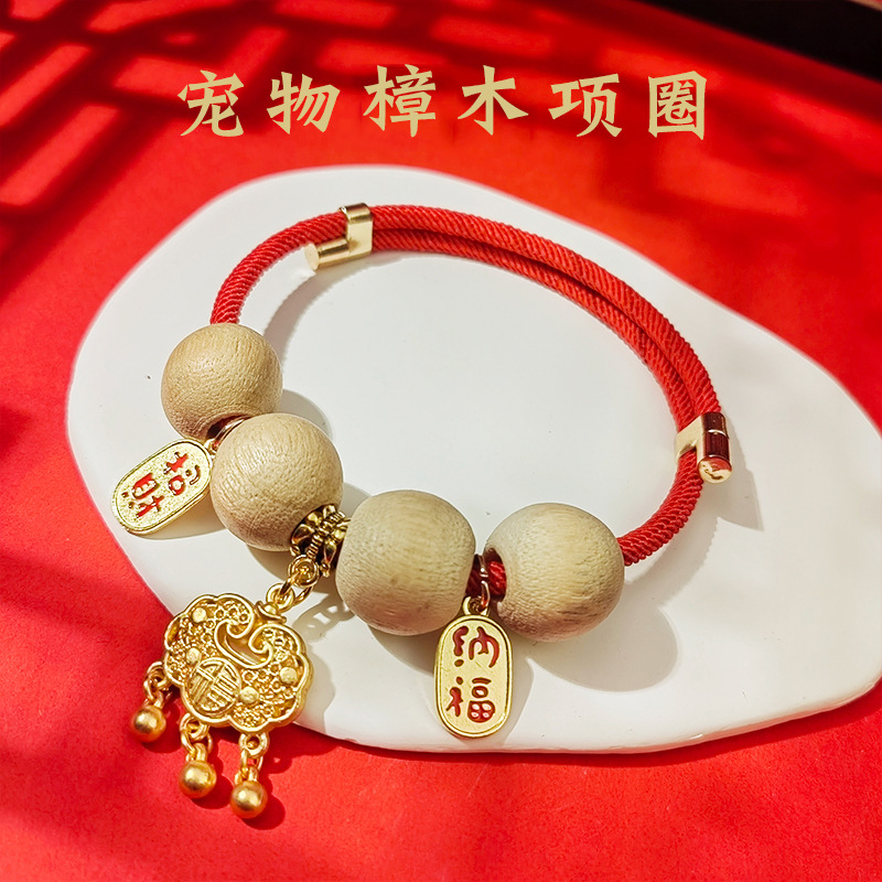 애완 동물 골드 구슬 긴 수명 잠금 침묵 새해 포춘 칼라 색상 보존 고양이 개 귀여운 꼰 로프 목걸이 보석