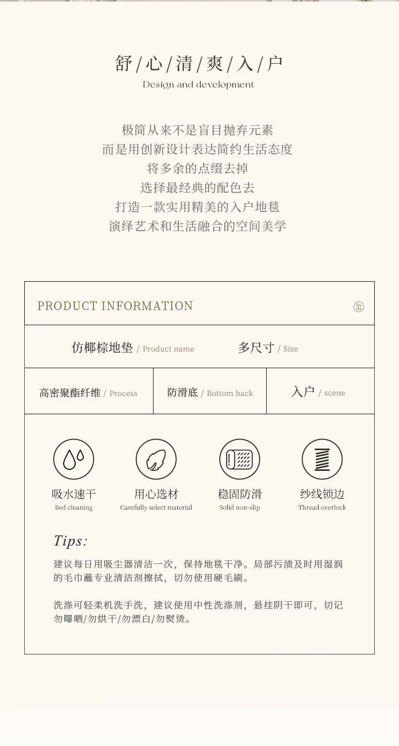 • 모방 코코넛 야자 바닥 매트로 함께 집에 가세요