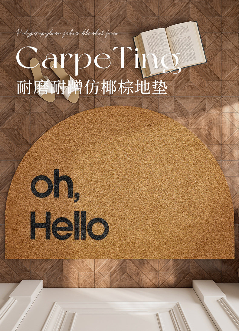 • 손으로 쓴 안녕하세요 모조 코코넛 야자 바닥 매트