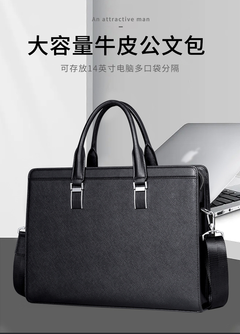巴顿皮具男包真皮男士手提包牛皮电脑包14寸商务大容量公文包礼品