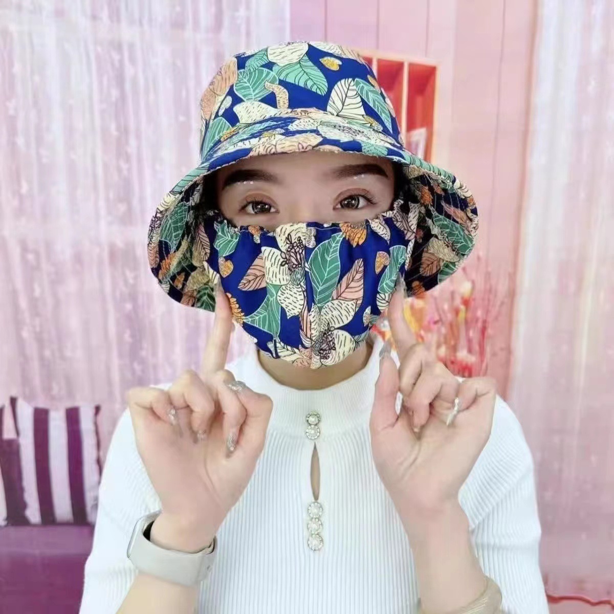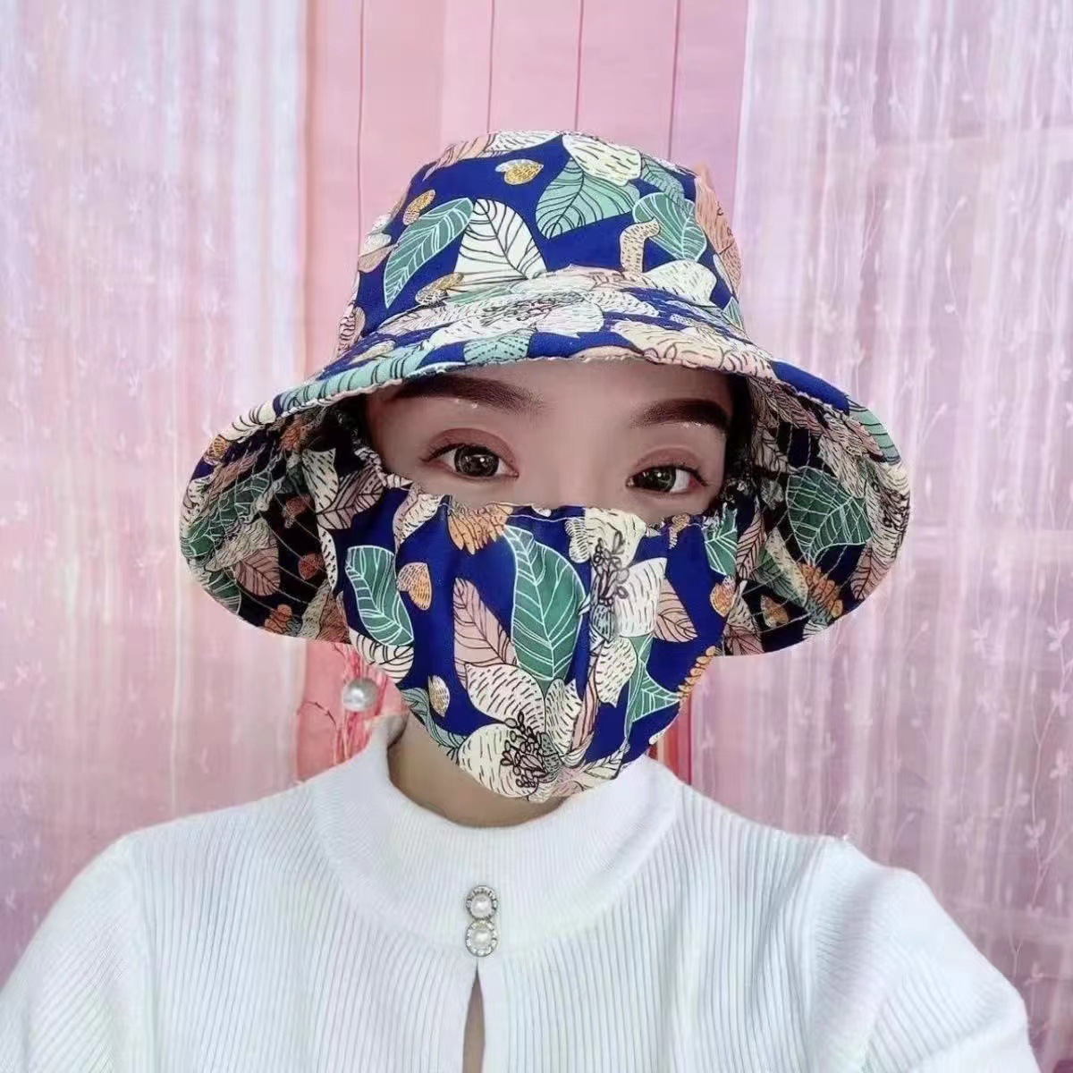 차 따기 모자 새로운 모자 마스크 통합 승마 작업 태양 보호 UV 보호 야외 농업 모자스토어 가기