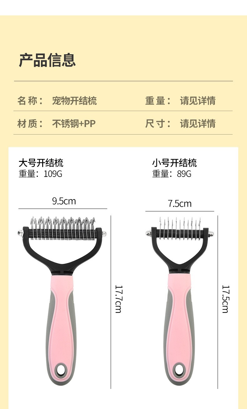 애완 동물 오픈 매듭 빗 고양이 빗 애완 동물 머리 제거 미용 용품 녹는 머리 빗 스테인레스 스틸 블레이드 양면 개 빗스토어 가기