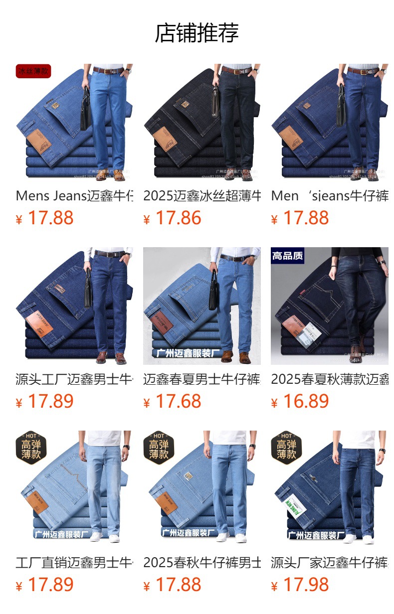 광저우 신탕 남성용 툴링 청바지 탄성 스트레이트 루즈 캐주얼 봄 여름과 가을 중년 남성용 바지스토어 가기