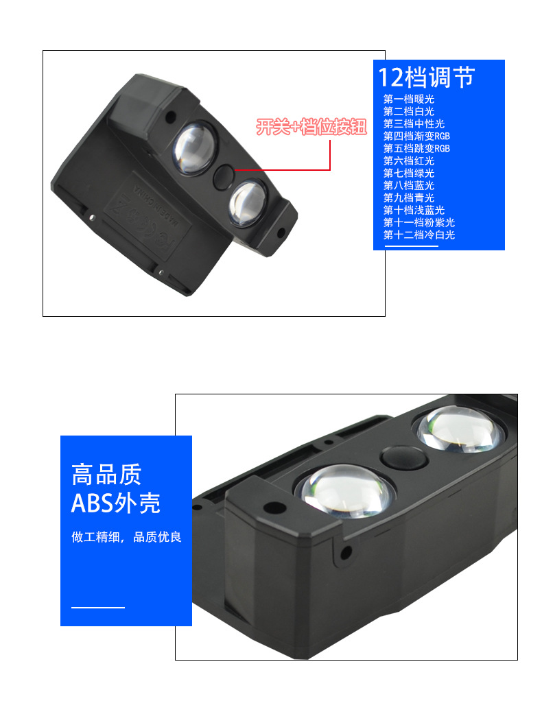 새로운 태양 벽 세척 램프 스포트라이트 밝은 볼록 렌즈 벽 램프 야외 정원 야드 12 단 색 혼합 벽 램프
