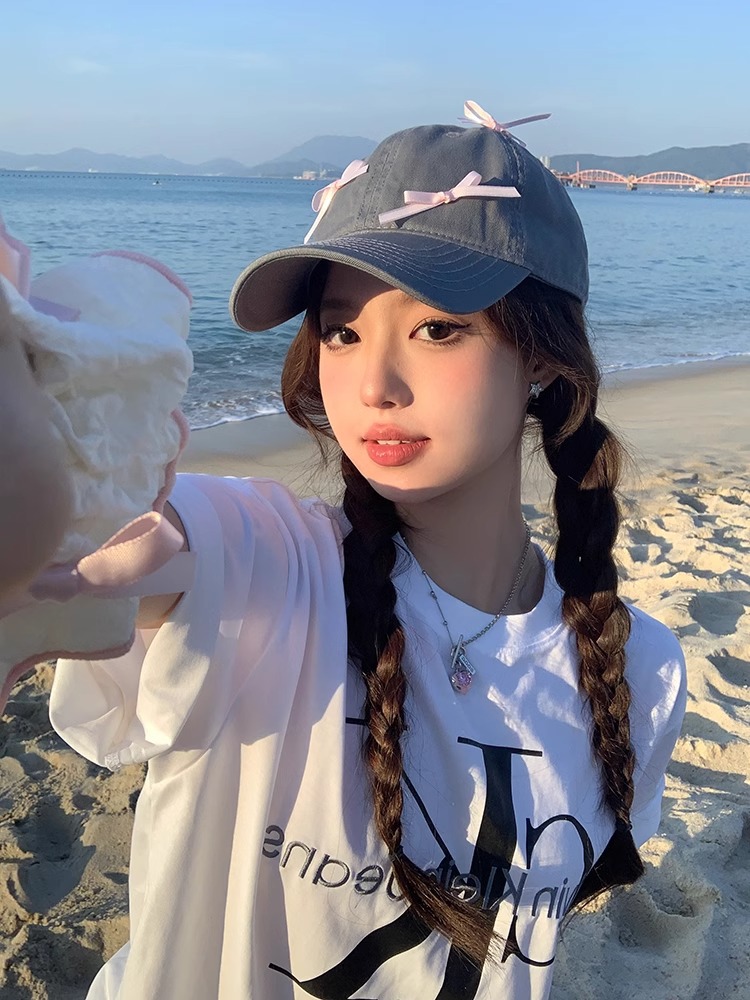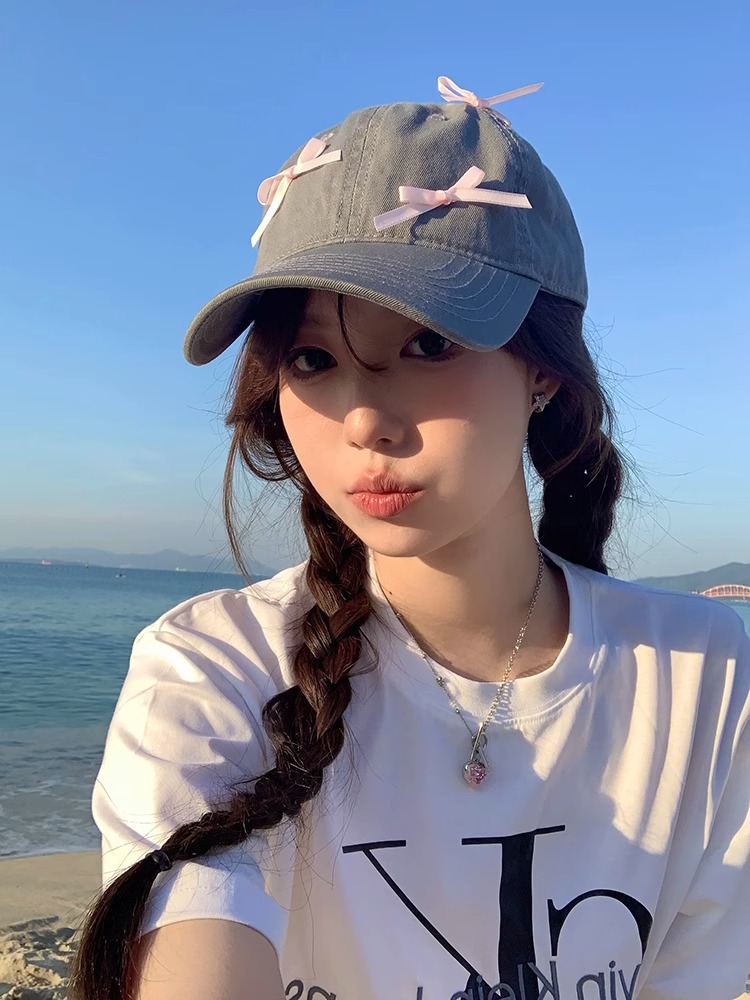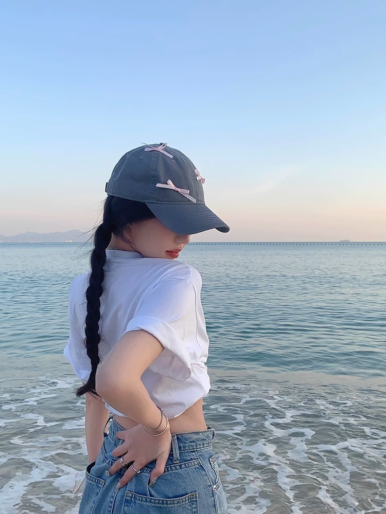 한국 스타일의 새로운 활 모자 봄 얼굴 작은 넓은 테두리 야구 모자 태양 모자 태양 모자 태양 모자스토어 가기