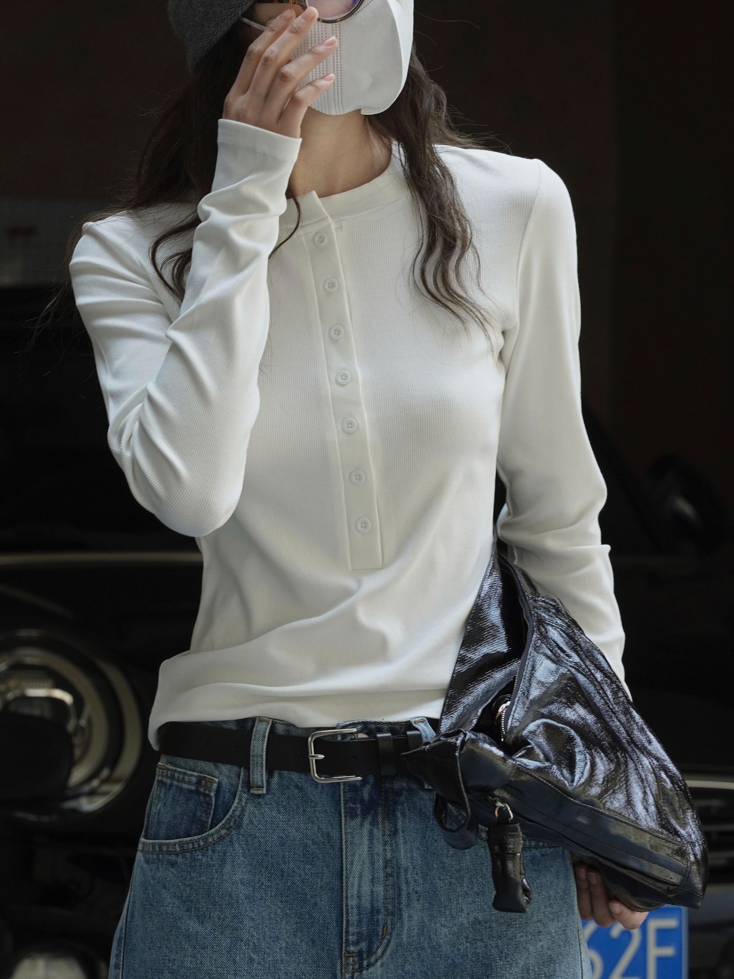 루푸 봄 새로운 한국 스타일 간단한 핫 소녀 니트 티셔츠 부드러운 찹쌀 피부 친화적 인 슬림 슬리밍 캐주얼 탑