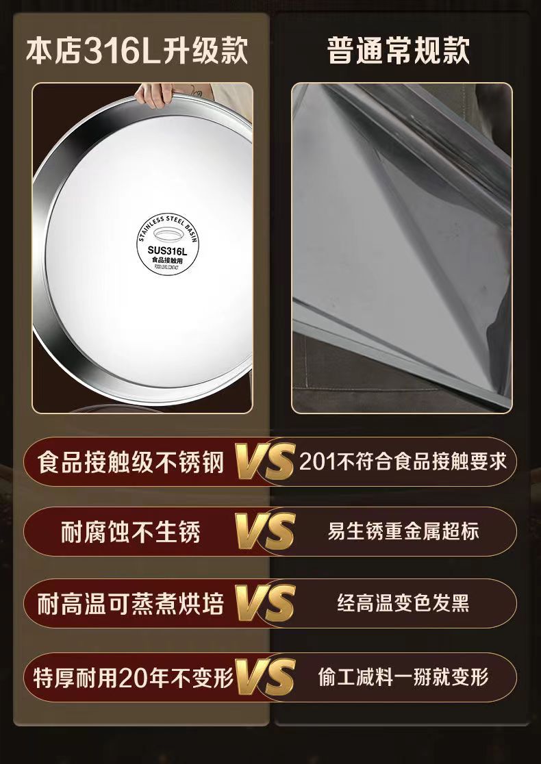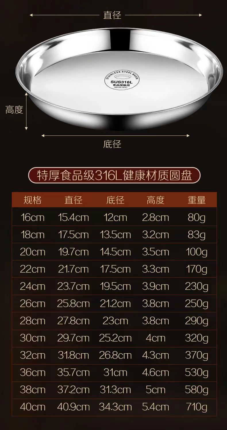 두꺼운 316L 스테인레스 스틸 디스크 콜드 스킨 플레이트 케이크 플레이트 라이스 볼 공 공 스팀 플레이트 플랫 하단 플레이트 바베큐 다목적 플레이트스토어 가기