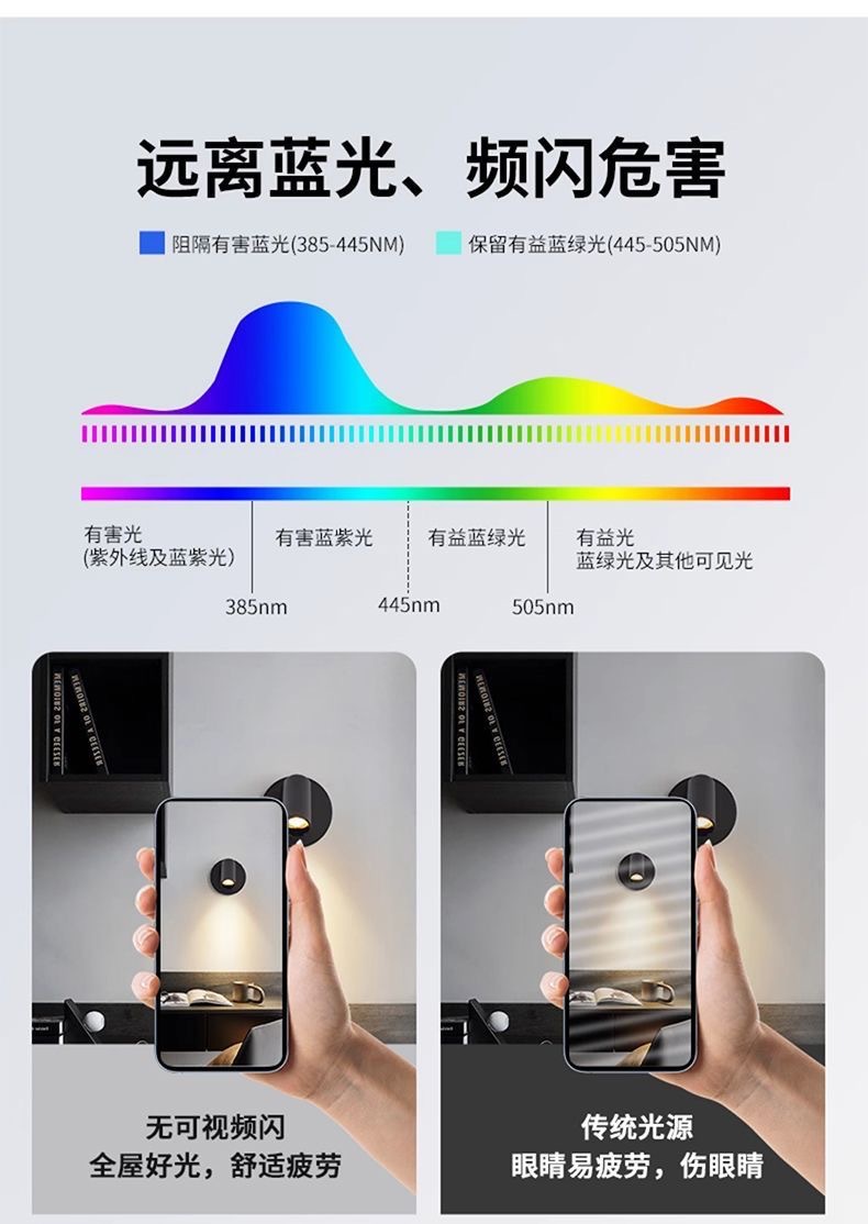 배선 무료 USB 충전식 벽 램프 무선 자기 흡입 스포트라이트 펀치 프리 침실 침대 옆 연구 사진 그림 벽 램프