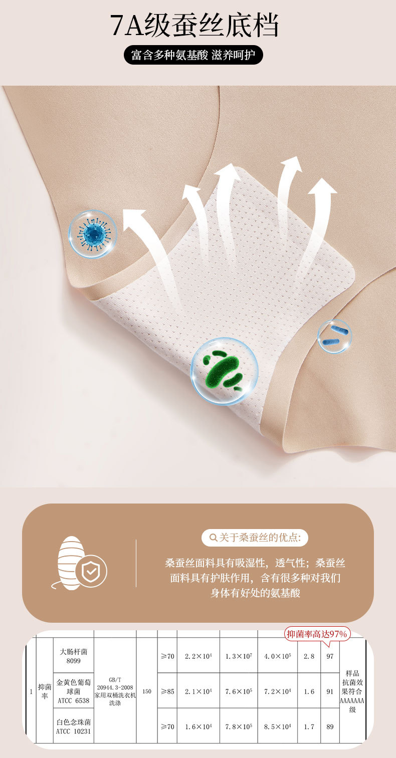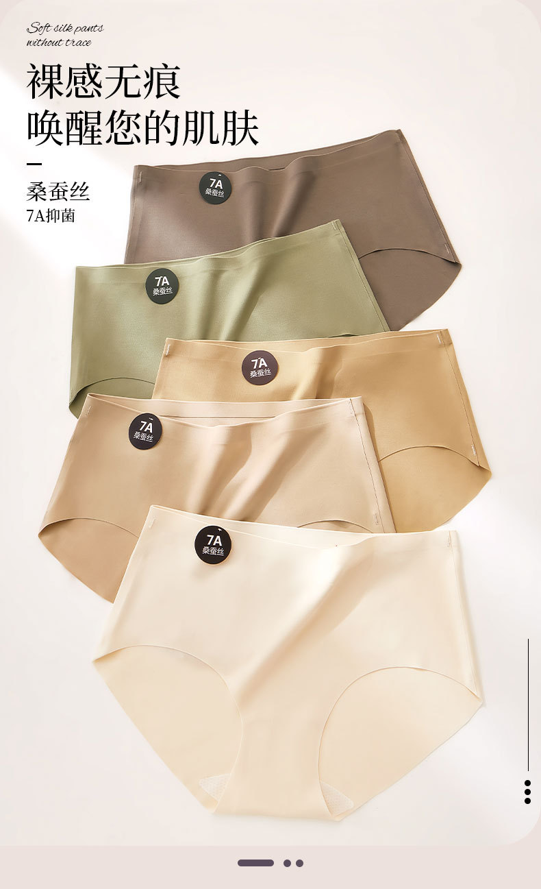 여성용 아이스 실크 심리스 속옷, 미드 웨이스트 항균 멀버리 실크 바닥 가랑이 7A 솔리드 컬러 비 클램핑 소녀 삼각형 반바지스토어 가기
