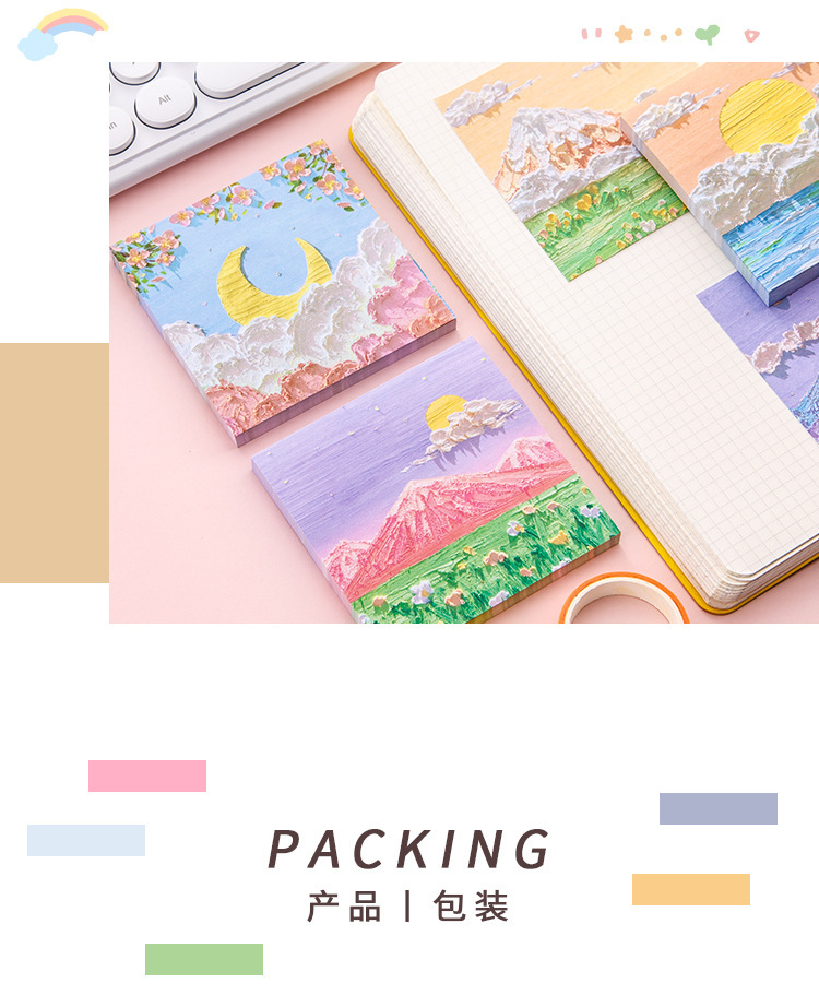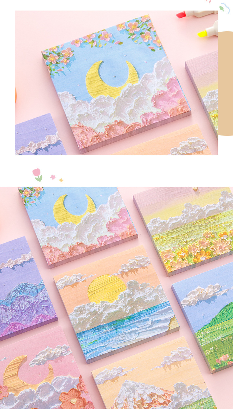T 유화 풍경 스티커 메모 ins 잘 생긴 학생 특별 메모 귀여운 끈적 끈적한 도매 스티커 메모스토어 가기