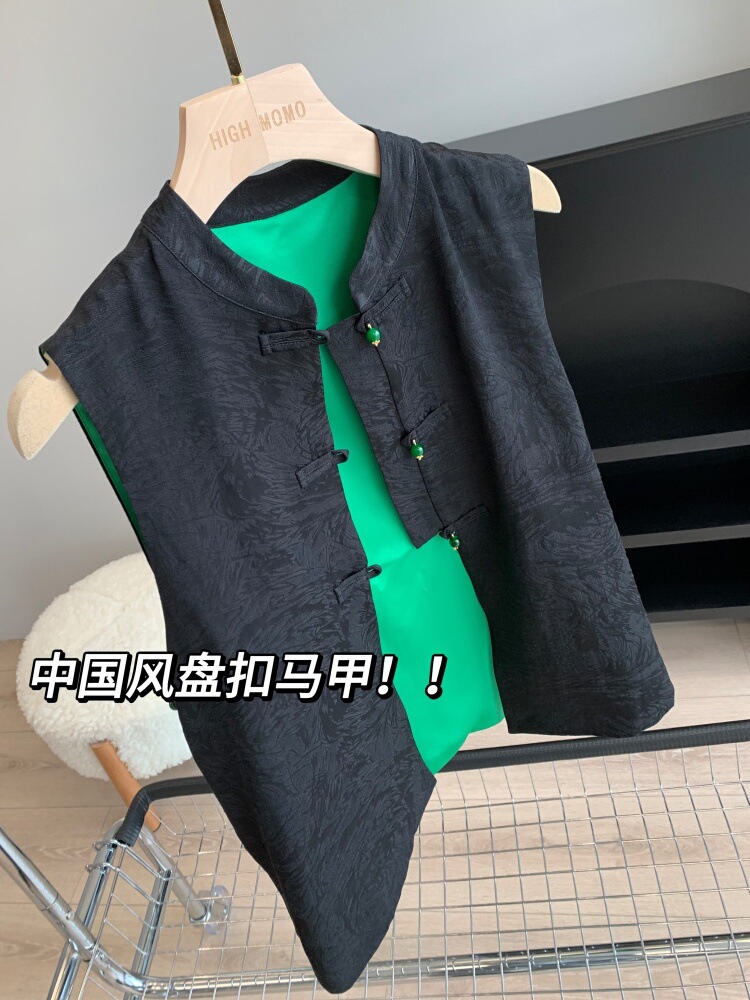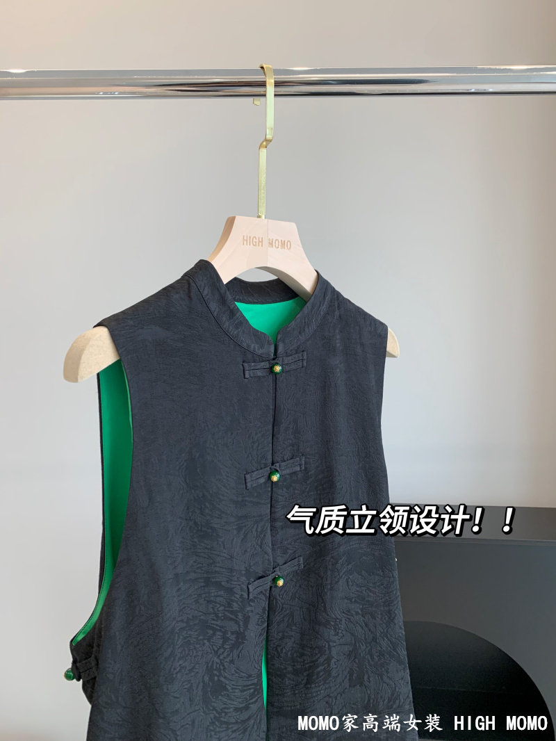 门襟扣子是一大亮点!!绿色玉石扣点缀!