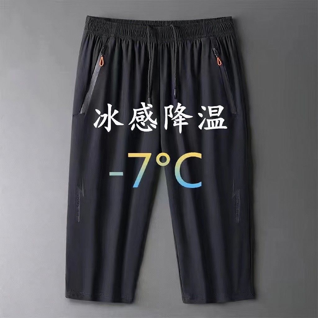새로운 남성 여름 아이스 실크 빠른 건조 바지 남성 스포츠 반바지 크롭 바지 느슨한 플러스 사이즈 캐주얼 반바지 얇은스토어 가기
