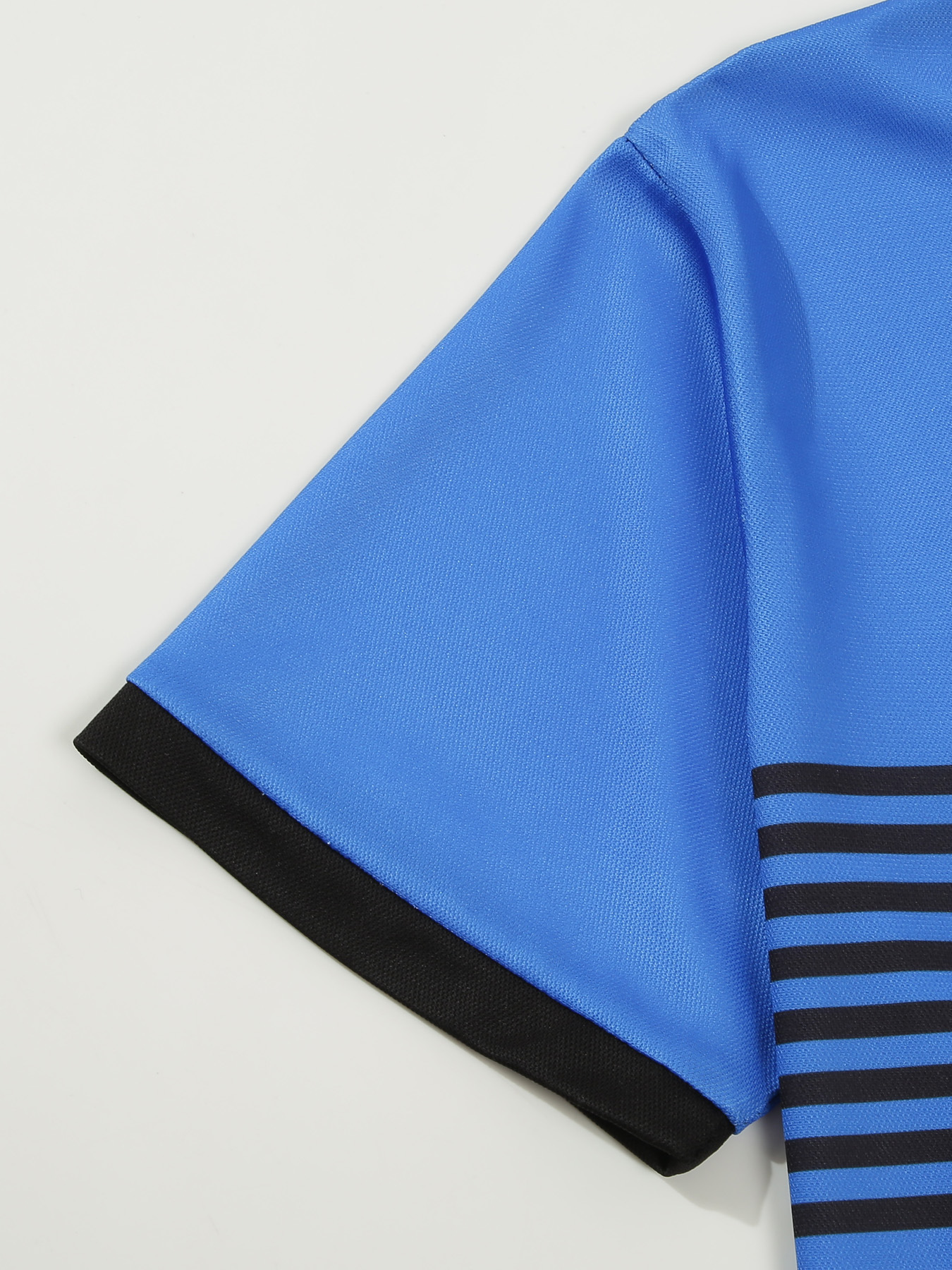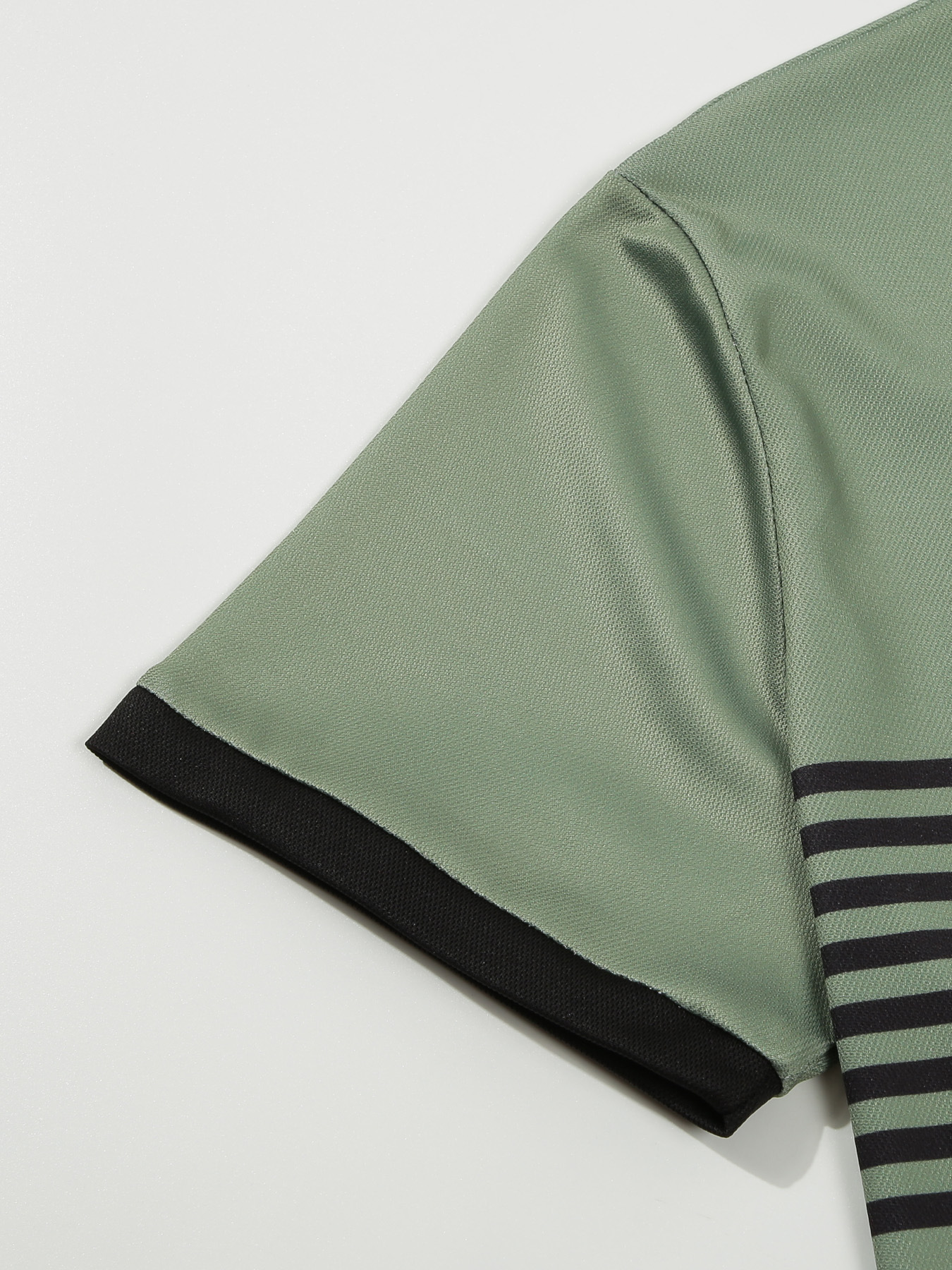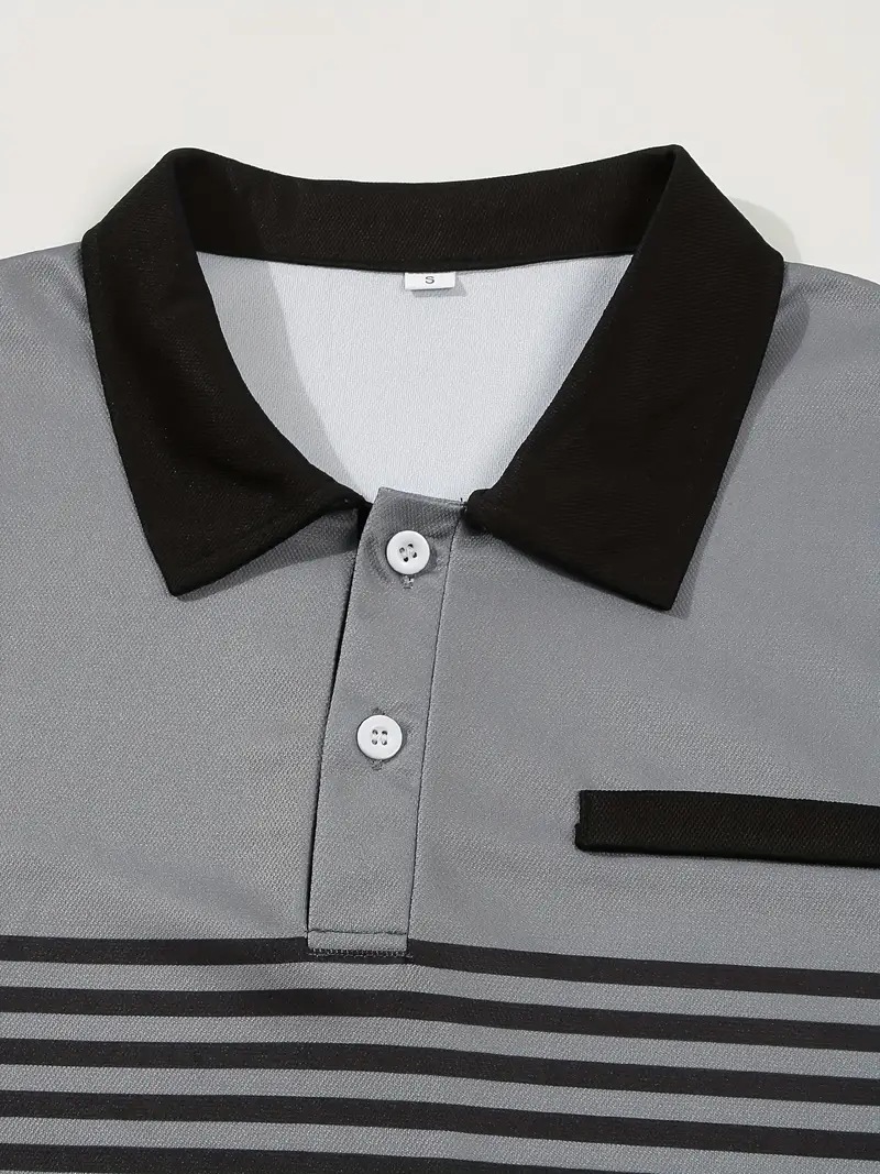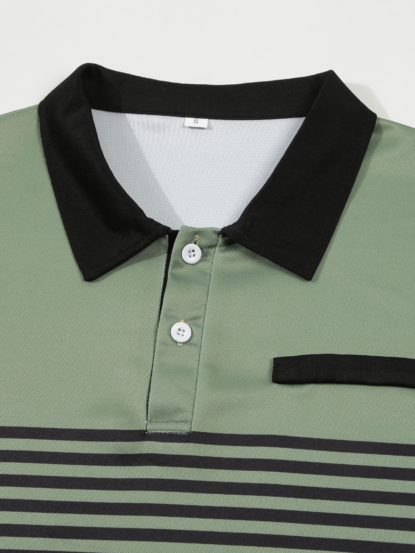 아마존 새로운 국경 남성 캐주얼 폴로 셔츠 가슴 가짜 포켓 버튼 프린트 컬러 매칭 스트라이프 티셔츠 남성용