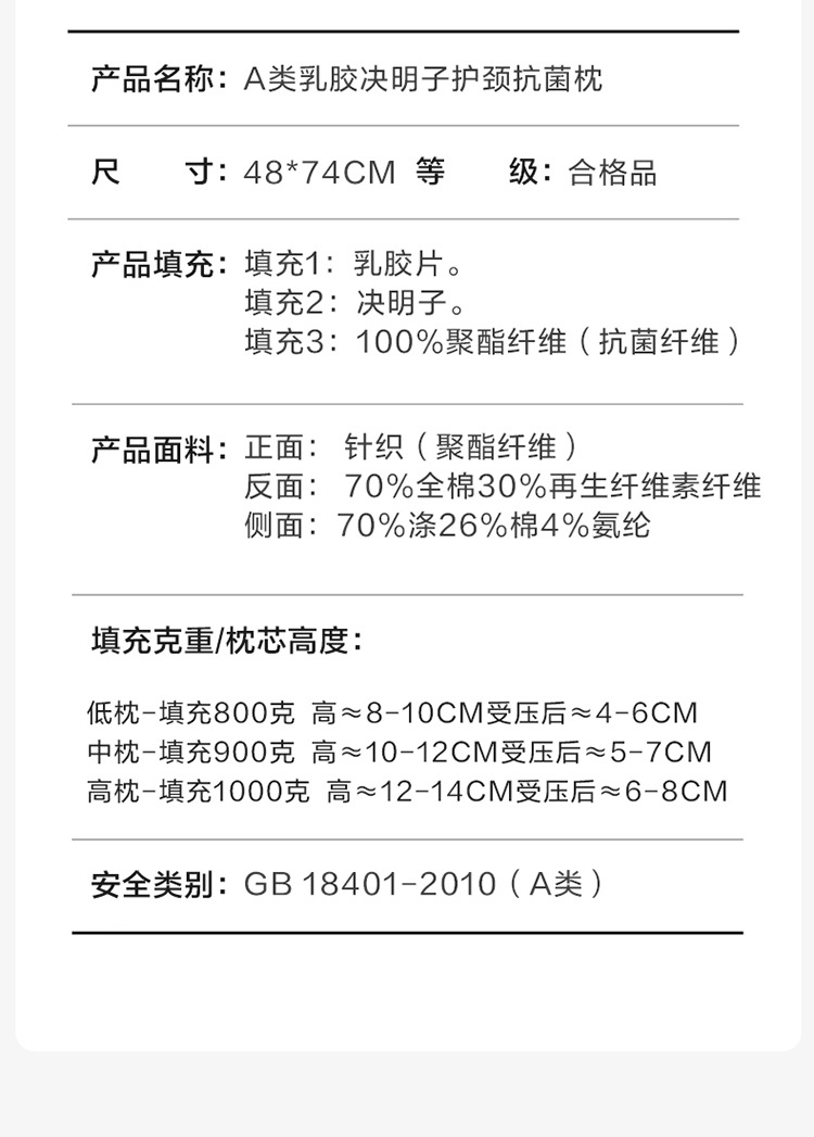 • LaTeX cassia 씨앗 베개 48*74 낮은 베개