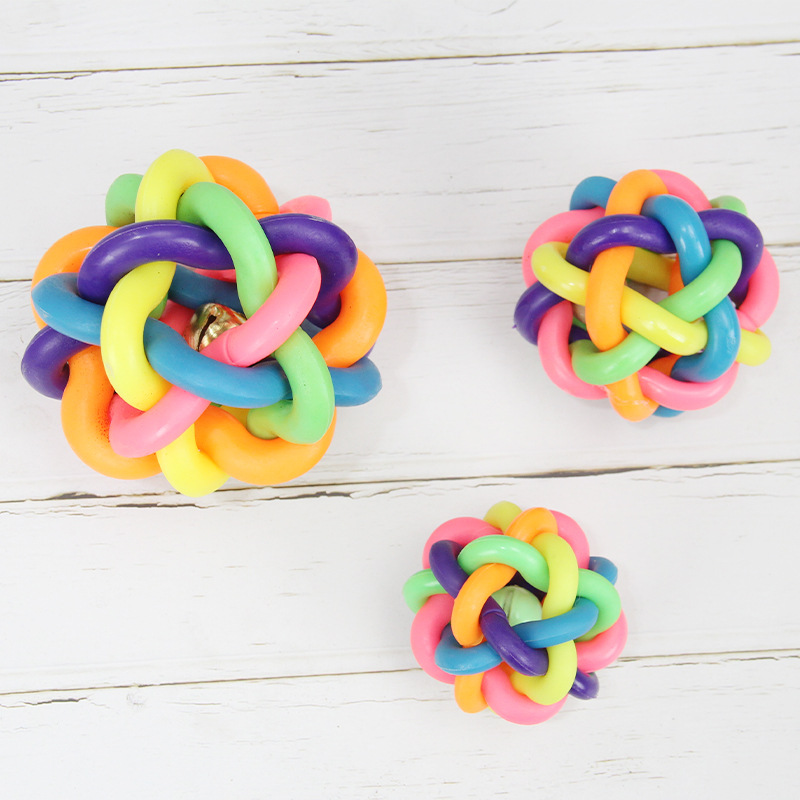 애완 동물 발성 장난감 공 색깔 벨 짠 공 고양이와 개 장난감 크고 중간 스몰 사이즈 개 애완 동물 장난감 공