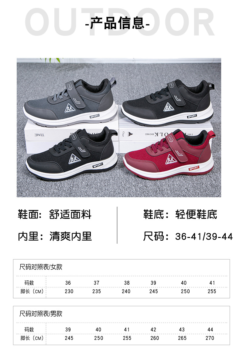 남성과 여성의 같은 운동화 봄과 가을 부드러운 바닥 운동화 엄마와 아빠 신발 국경 도매 중년 및 노인 신발스토어 가기