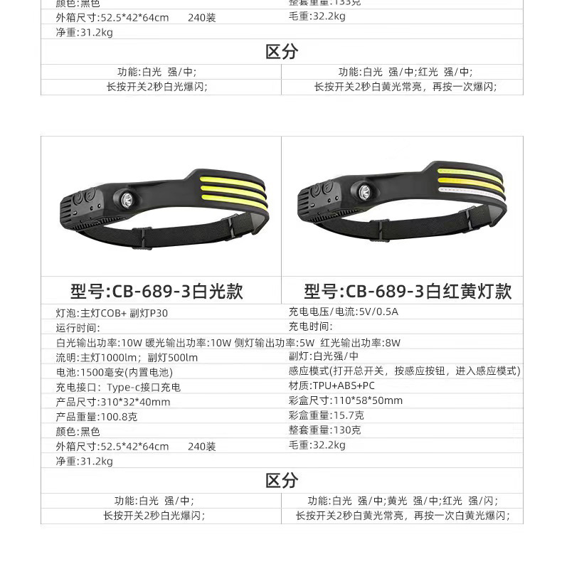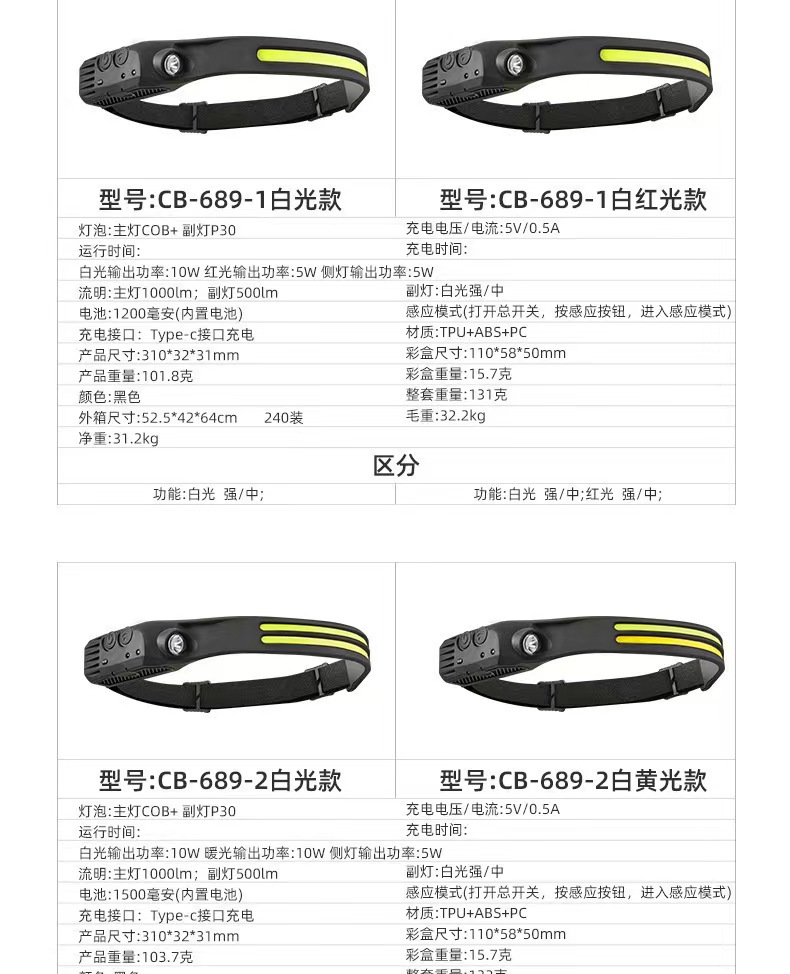 • W689-2 유도 헤드라이트(이중 백색광 + 황색광)