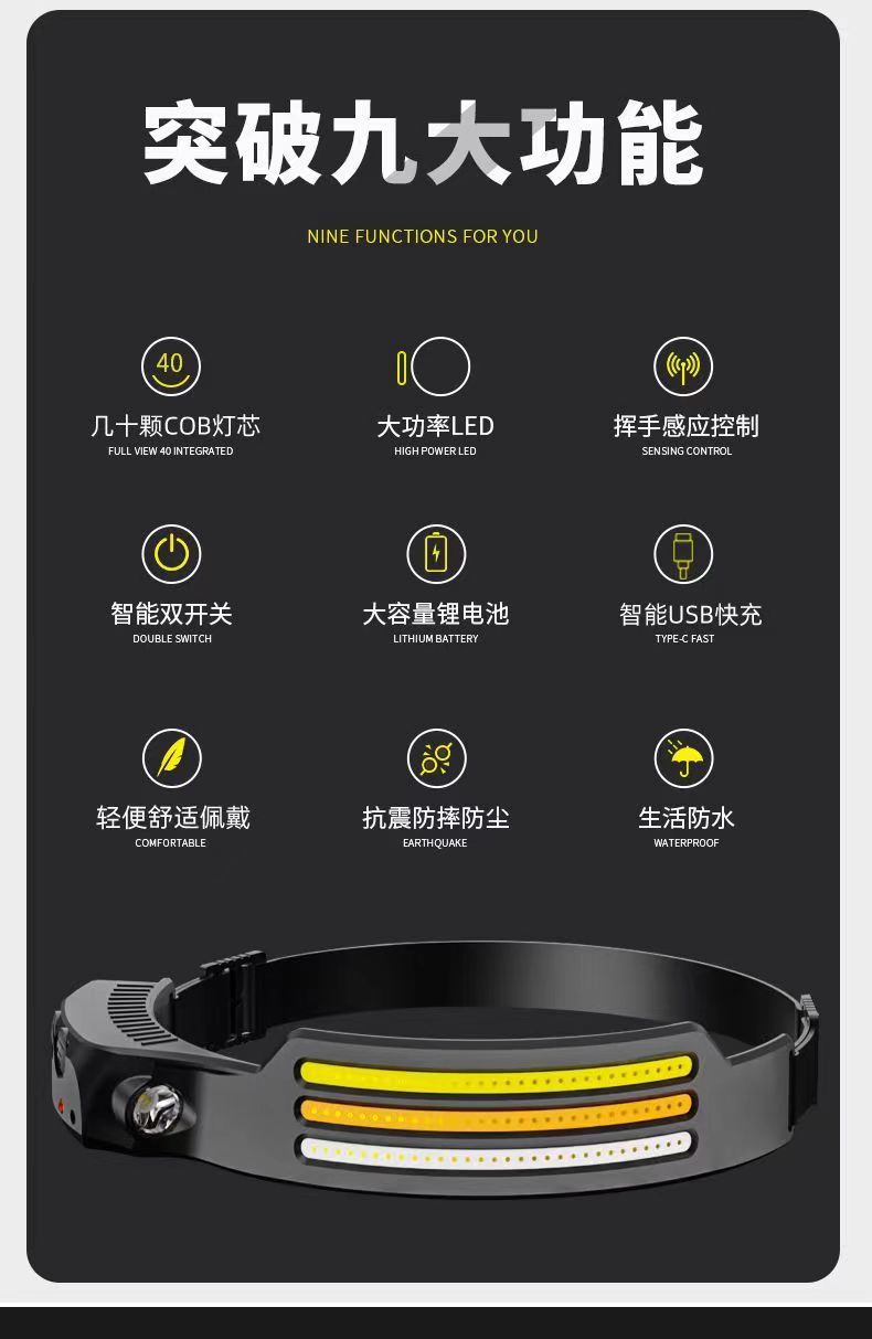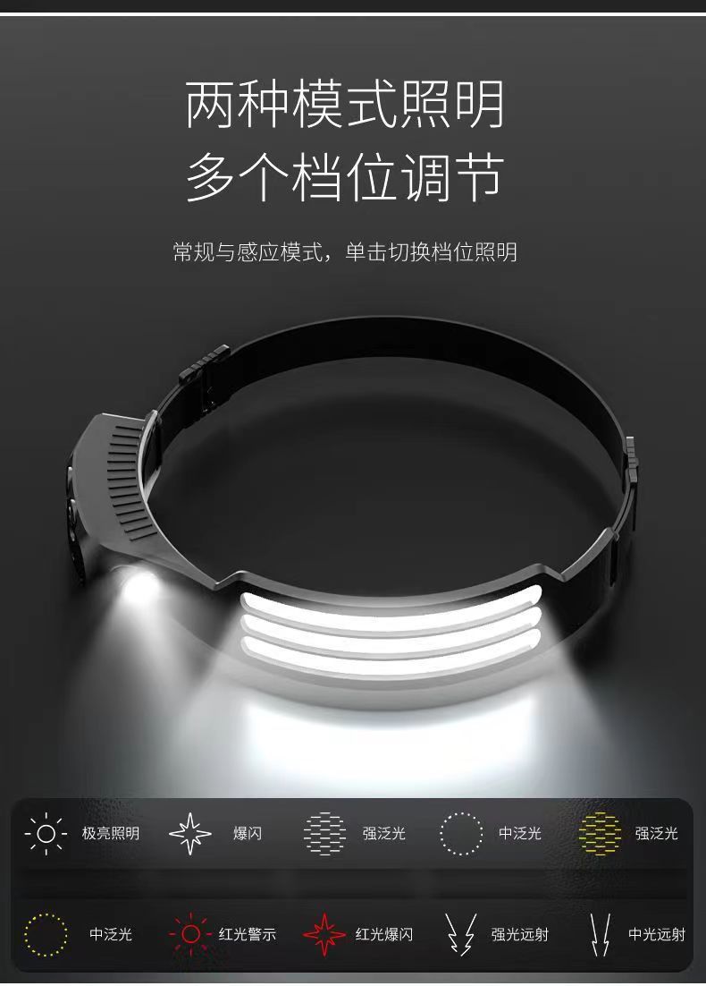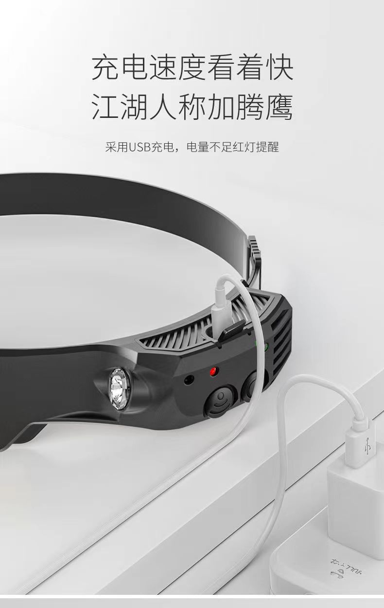 머리에 장착 된 강한 빛 충전 슈퍼 밝은 낚시 헤드 라이트 조명 특수 긴 내구성 실리콘 유도 야간 낚시 헤드 라이트