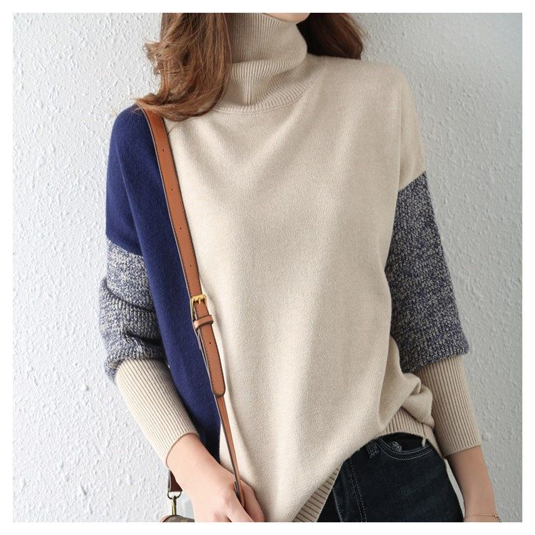 가을과 겨울의 새로운 일본식 터틀넥 스웨터 여성 컬러 매칭 바닥 느슨하게 두꺼운 게으른 스타일 겉옷 바닥 스웨터스토어 가기