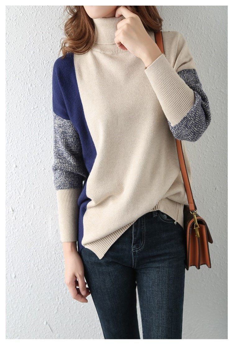가을과 겨울의 새로운 일본식 터틀넥 스웨터 여성 컬러 매칭 바닥 느슨하게 두꺼운 게으른 스타일 겉옷 바닥 스웨터