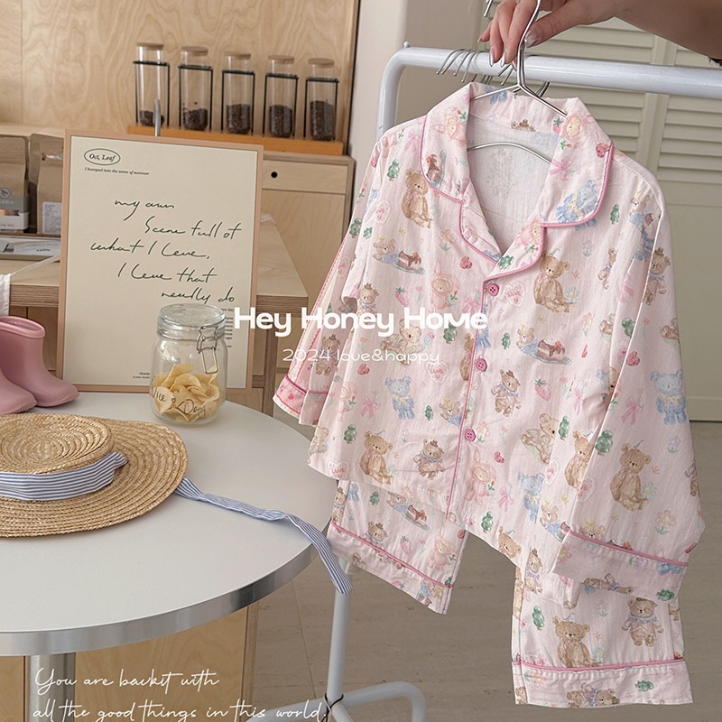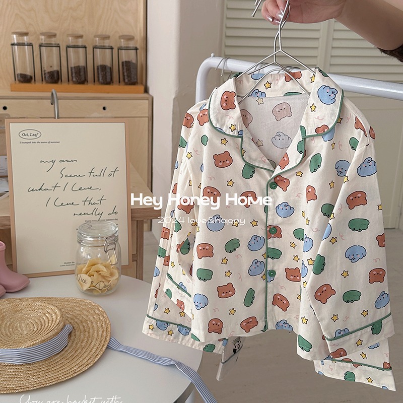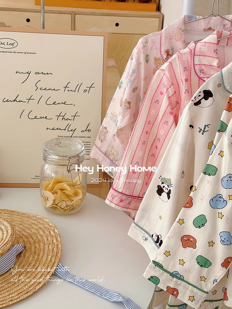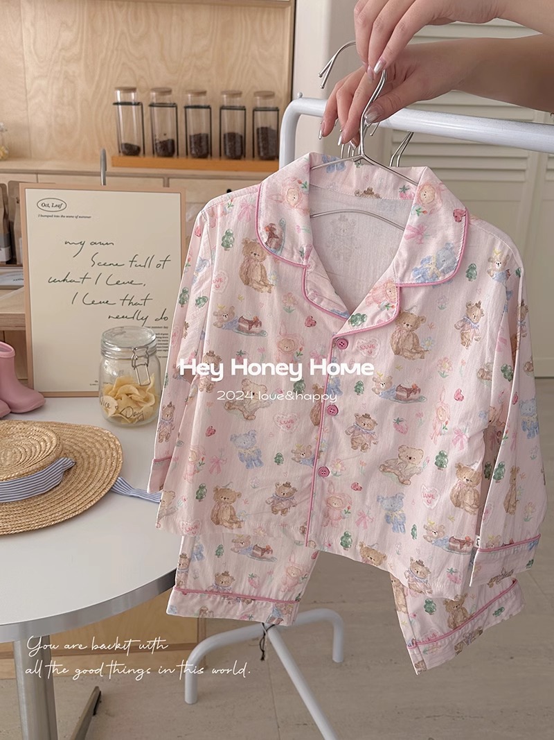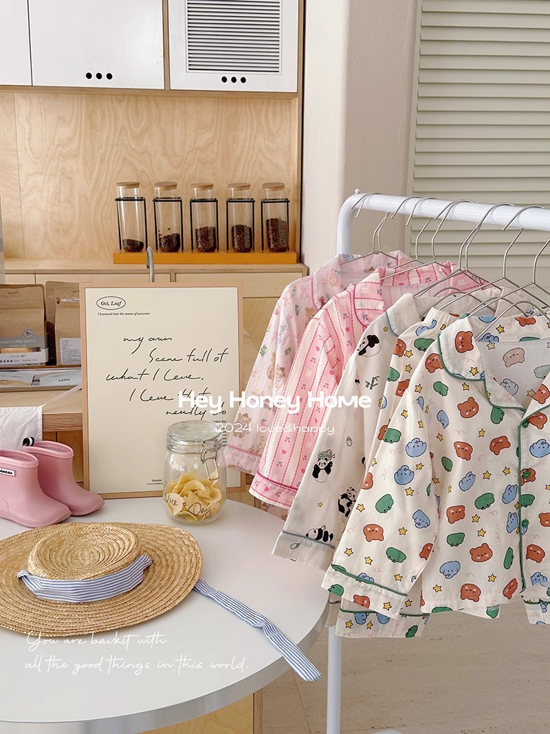 어린이 잠옷 봄과 가을 아기 홈 웨어 토끼 얇은 세트 소년 소녀 새 긴 소매 두 조각 세트스토어 가기