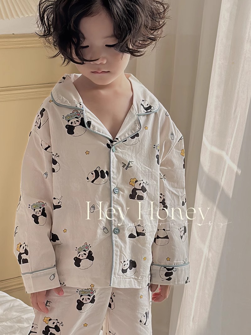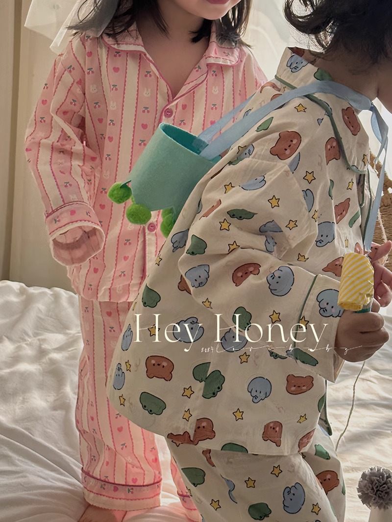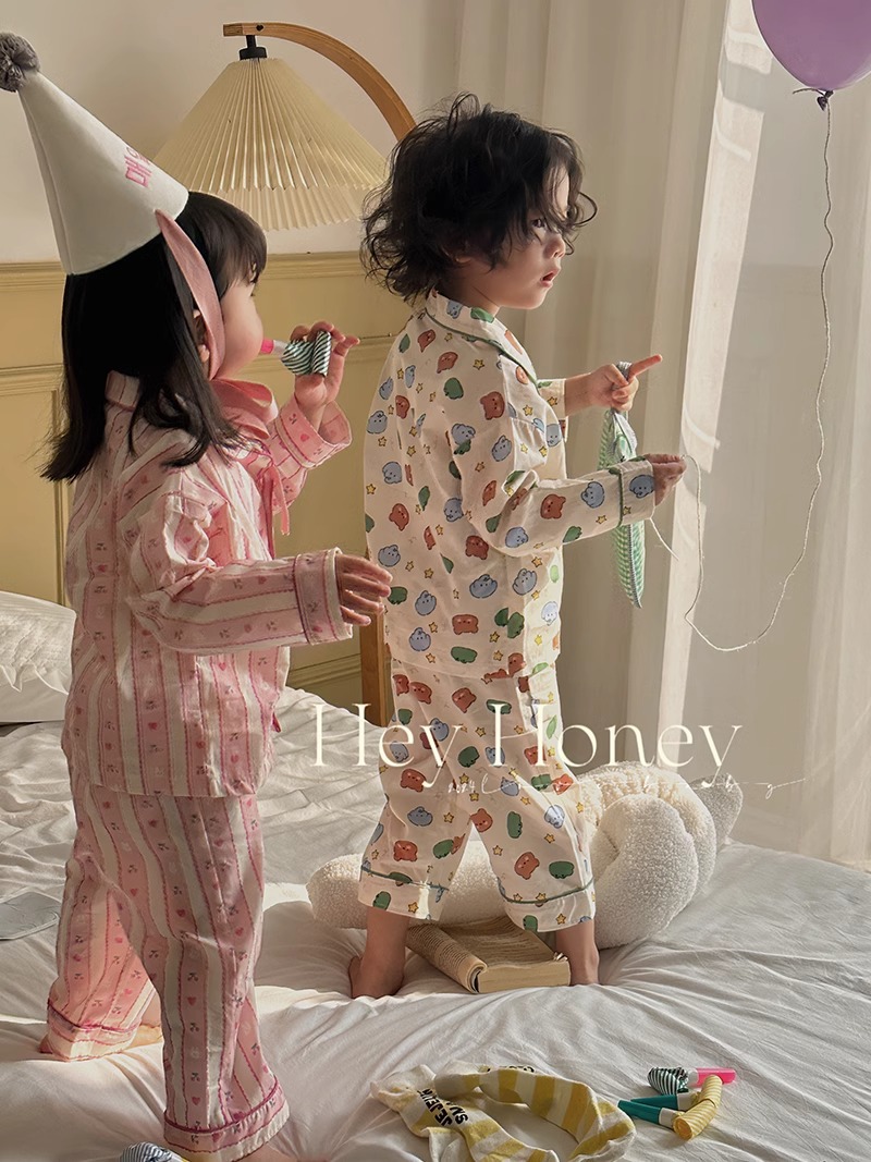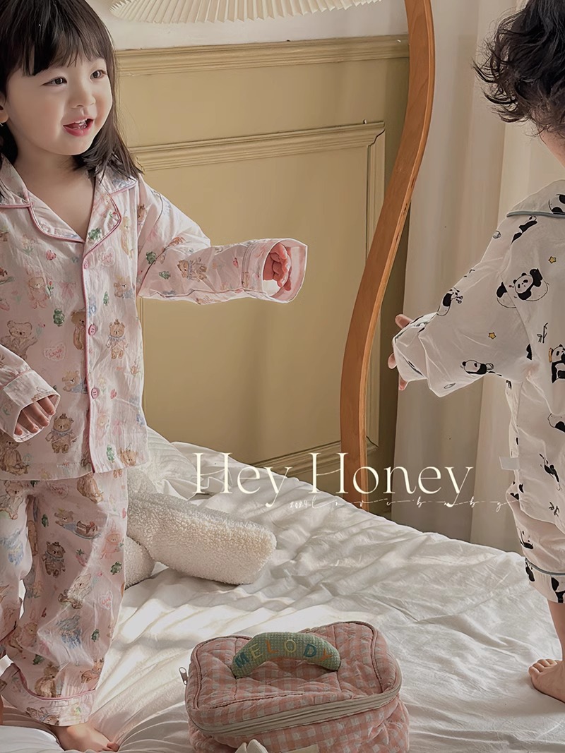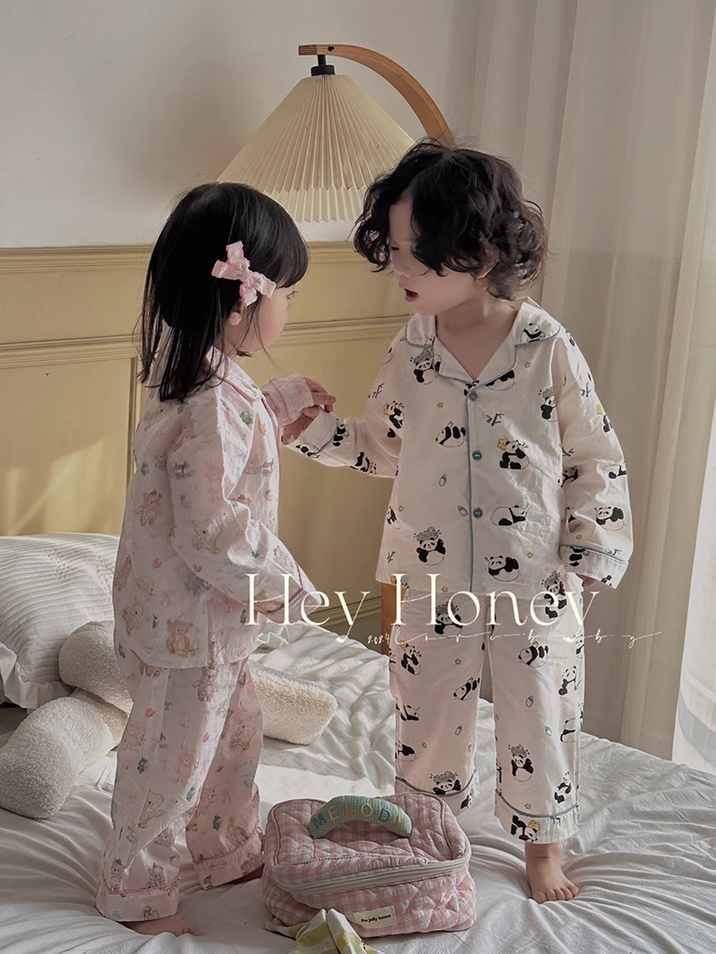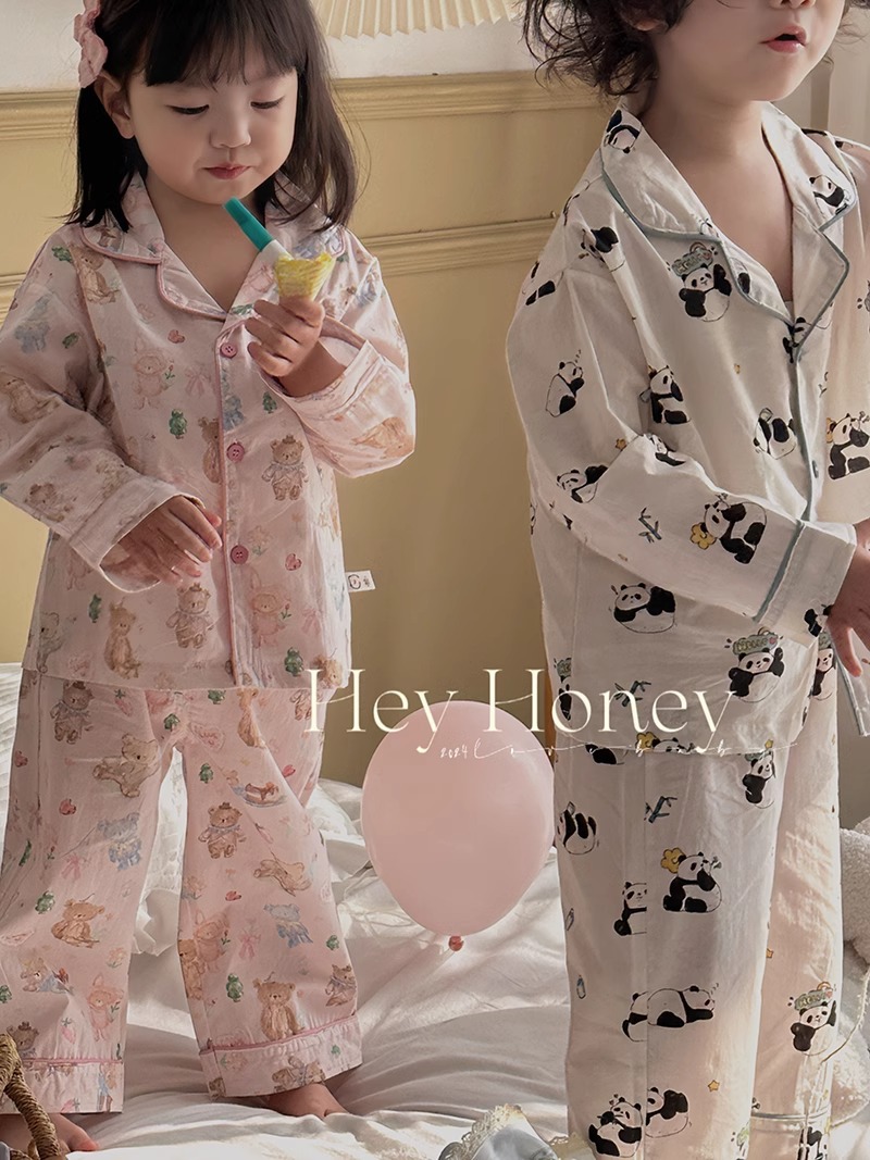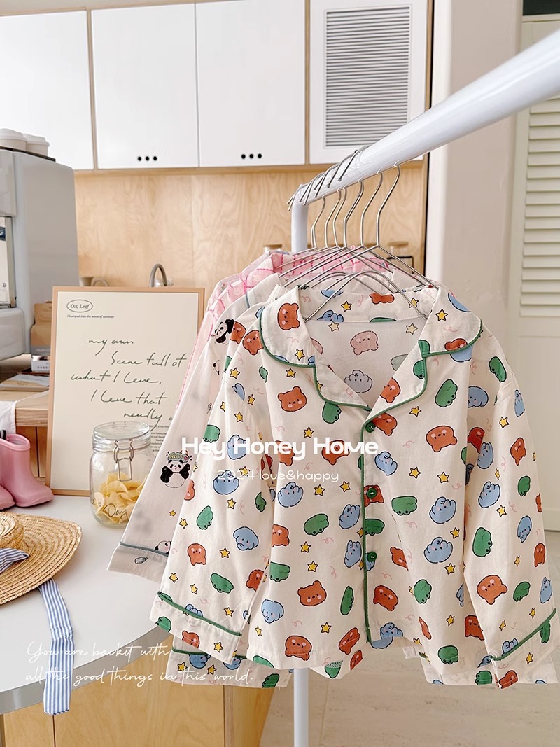 어린이 잠옷 봄과 가을 아기 홈 웨어 토끼 얇은 세트 소년 소녀 새 긴 소매 두 조각 세트