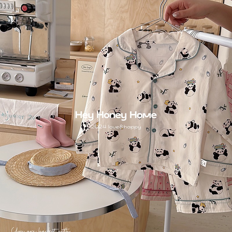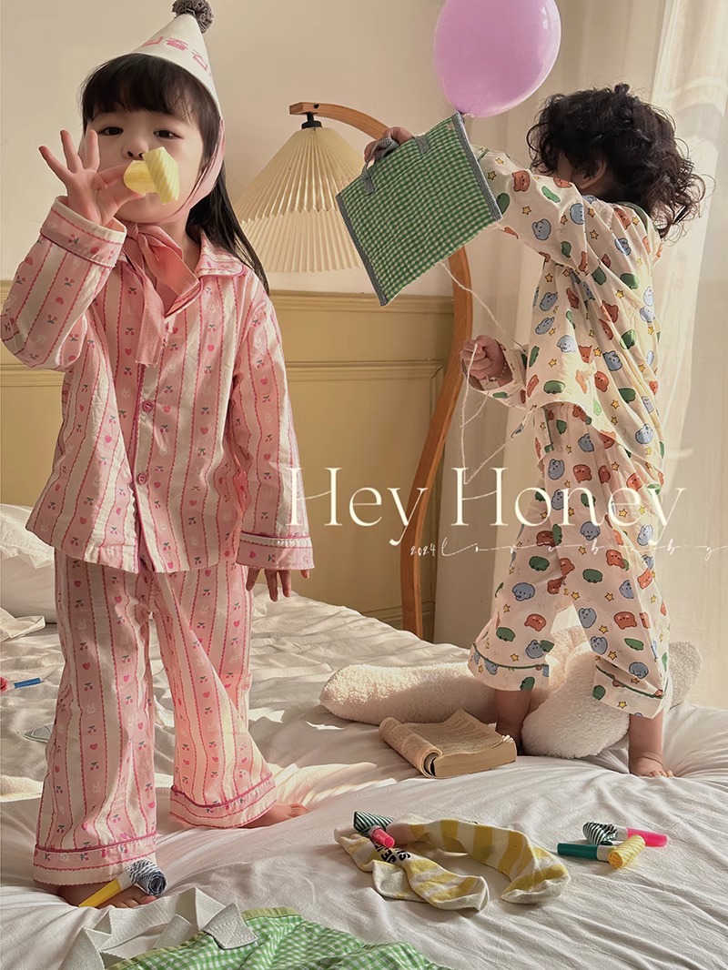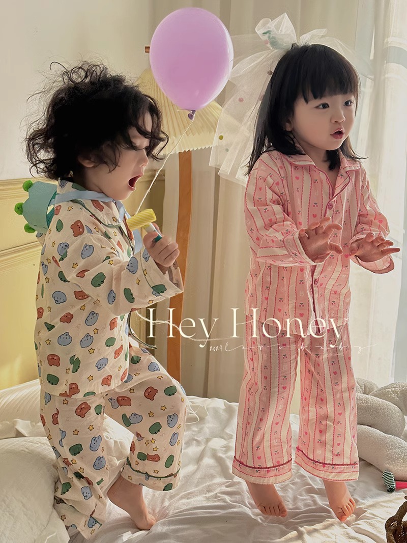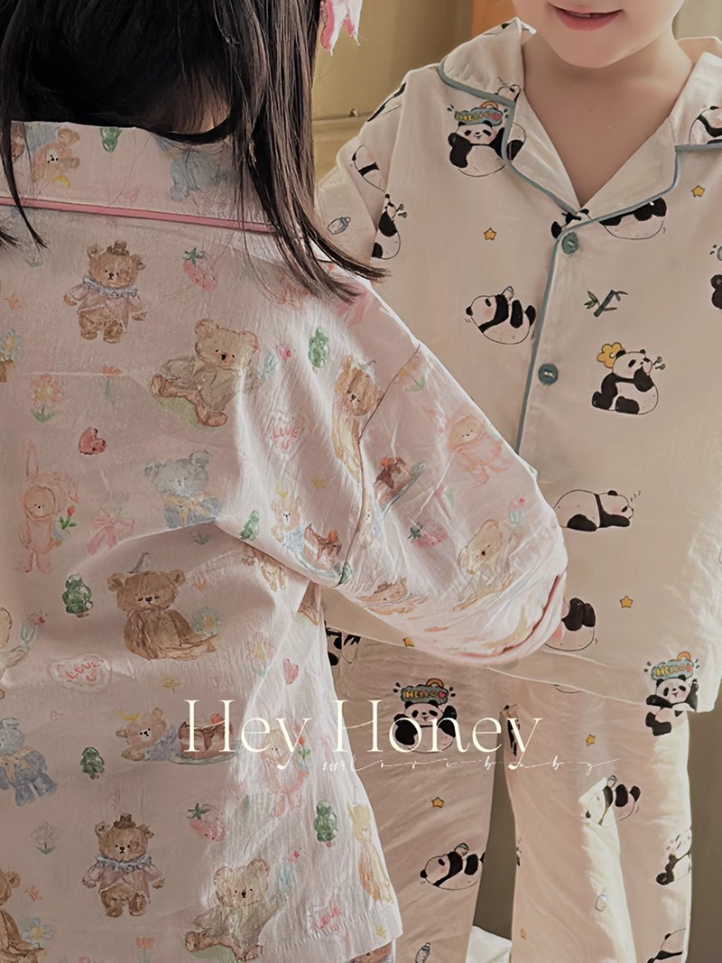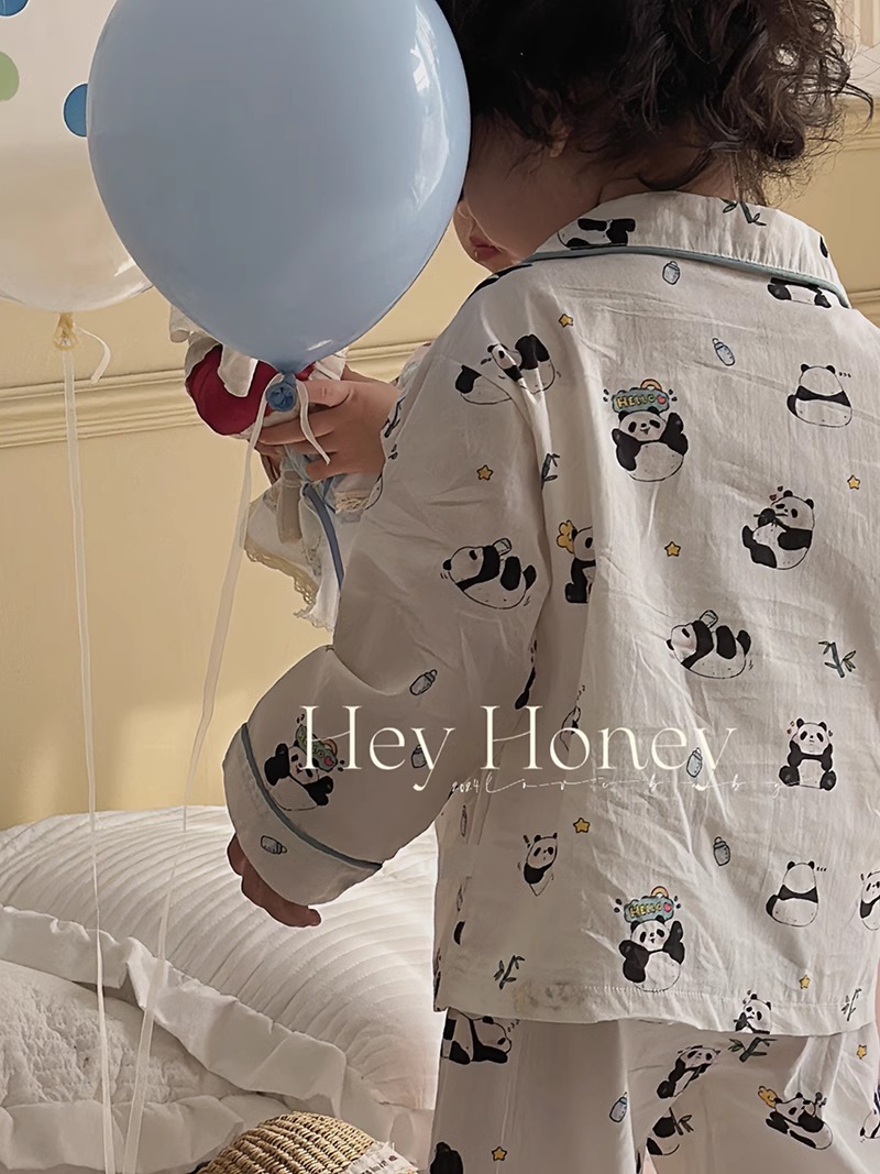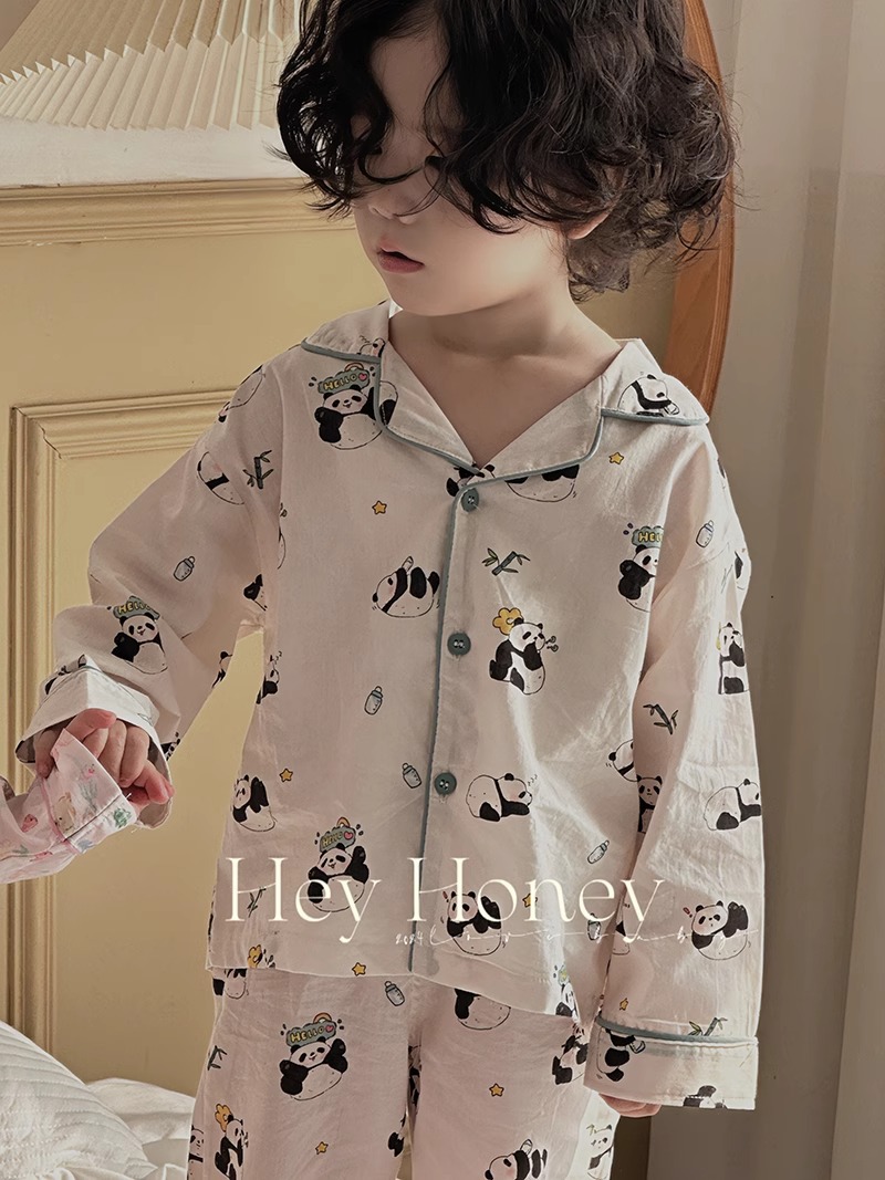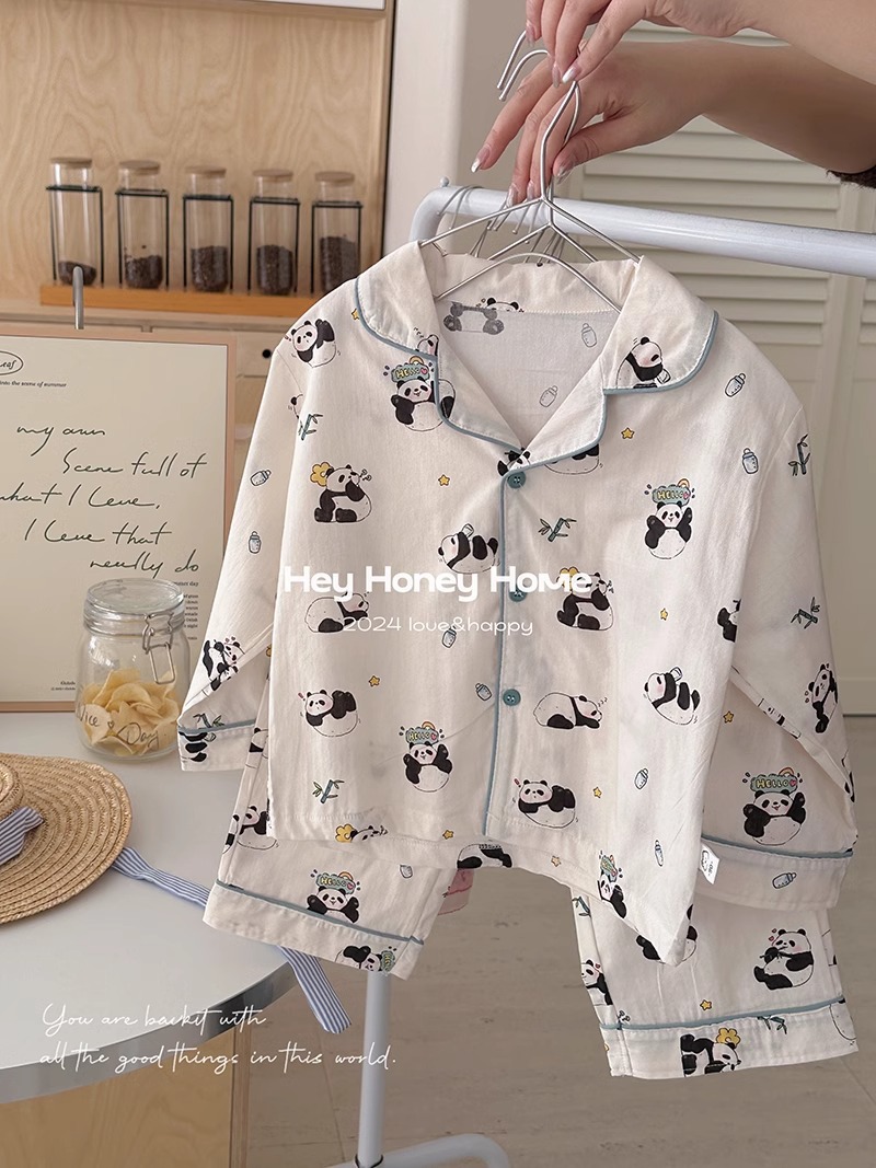 어린이 잠옷 봄과 가을 아기 홈 웨어 토끼 얇은 세트 소년 소녀 새 긴 소매 두 조각 세트