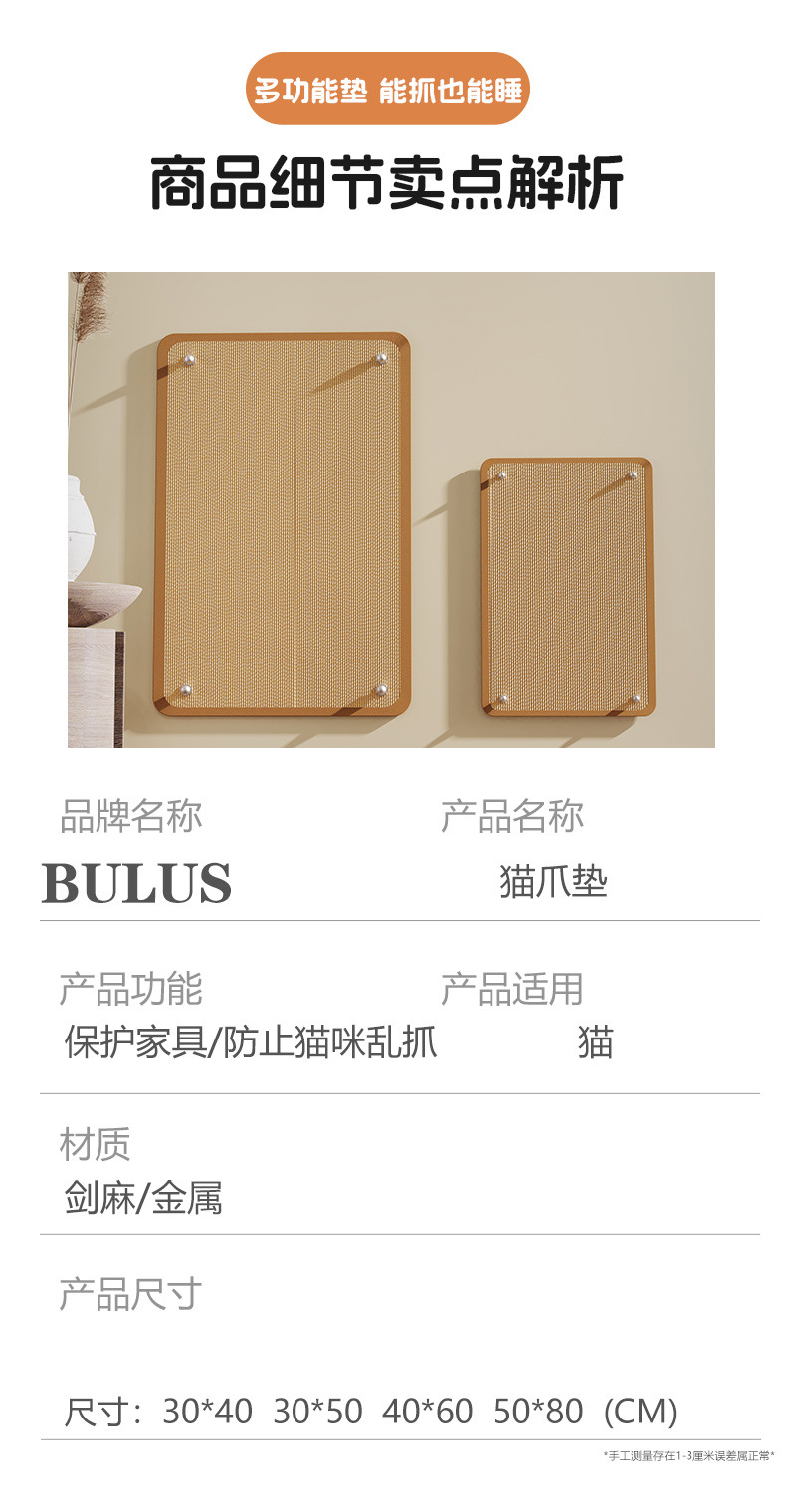 공장 직판 카나타마 매트 내마모성 긁힘 방지 보풀 없음 소파 보호 고양이 발톱 긁힘 방지 고양이 발톱판 애완용품스토어 가기