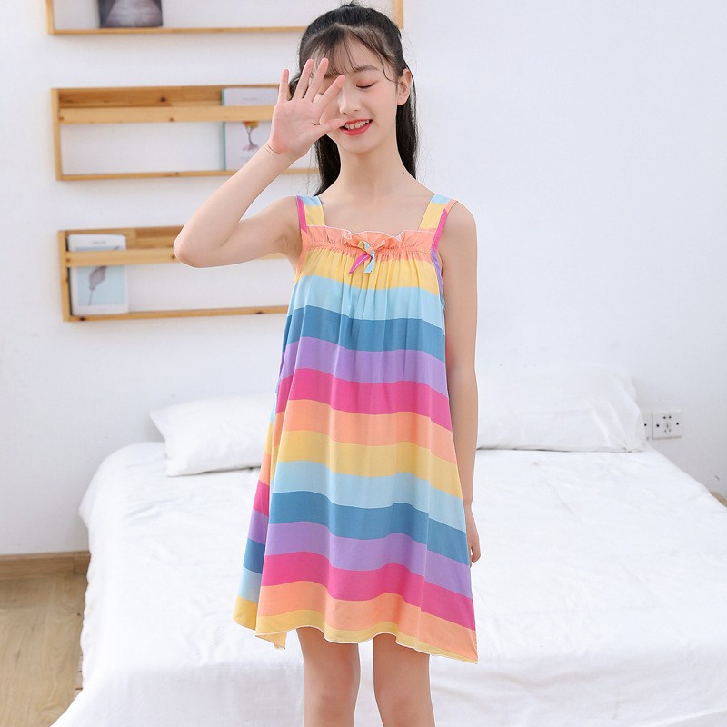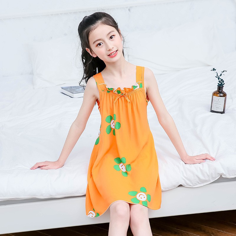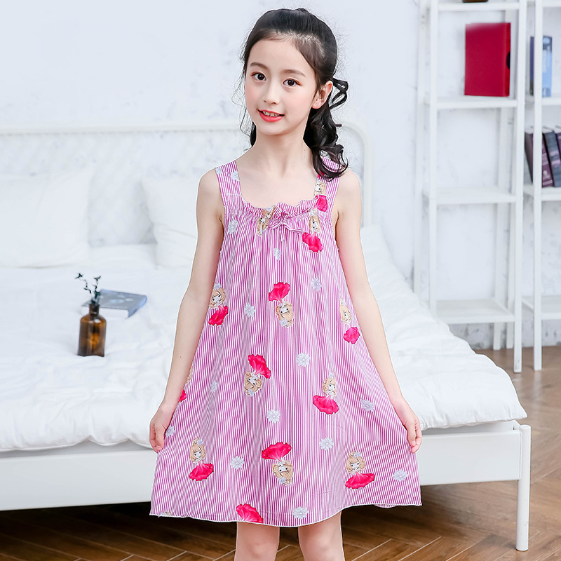 소녀의 여름 얇은 슬링 원피스 중대형 아동면 실크 파자마 아기 공주 원피스 만화 홈웨어 나이트 드레스스토어 가기