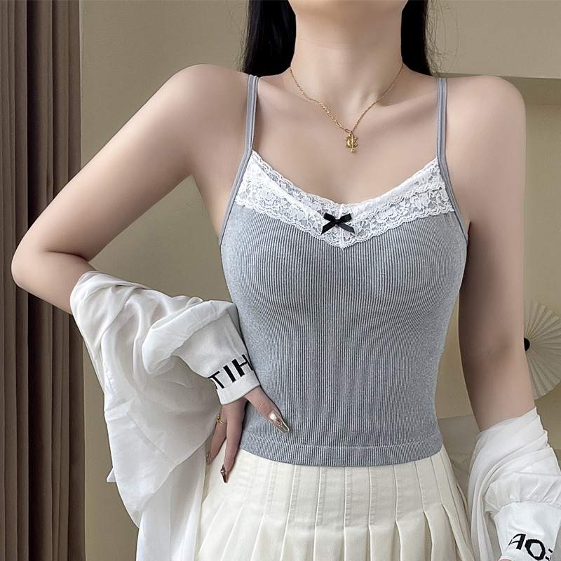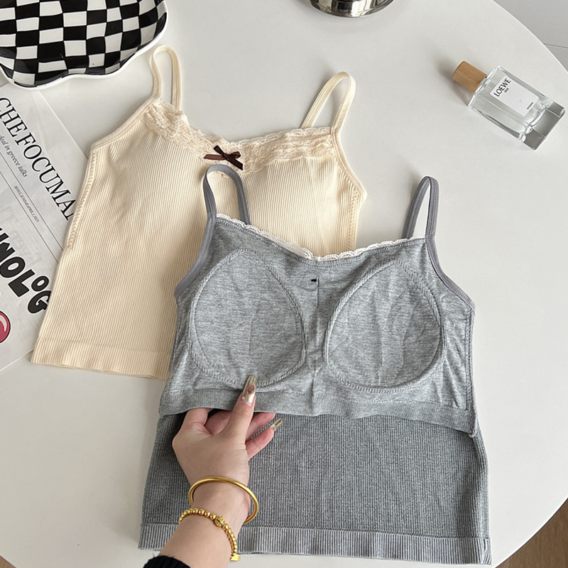 순수한 욕망 레이스 뷰티 백 캐미솔 여성 여름 가슴 패드 고정 컵 뜨거운 소녀 외부 착용 내부 스트랩 튜브 탑 여성