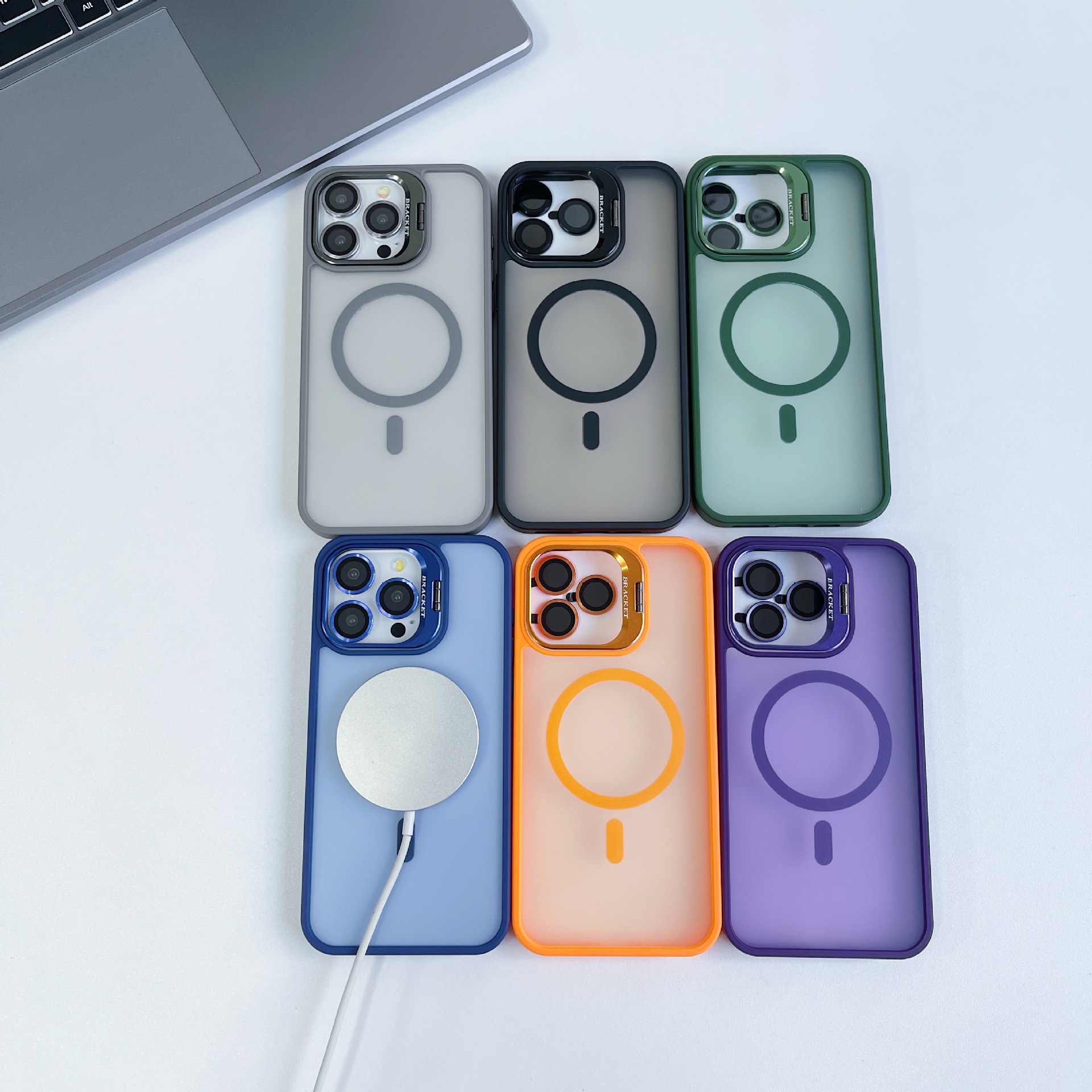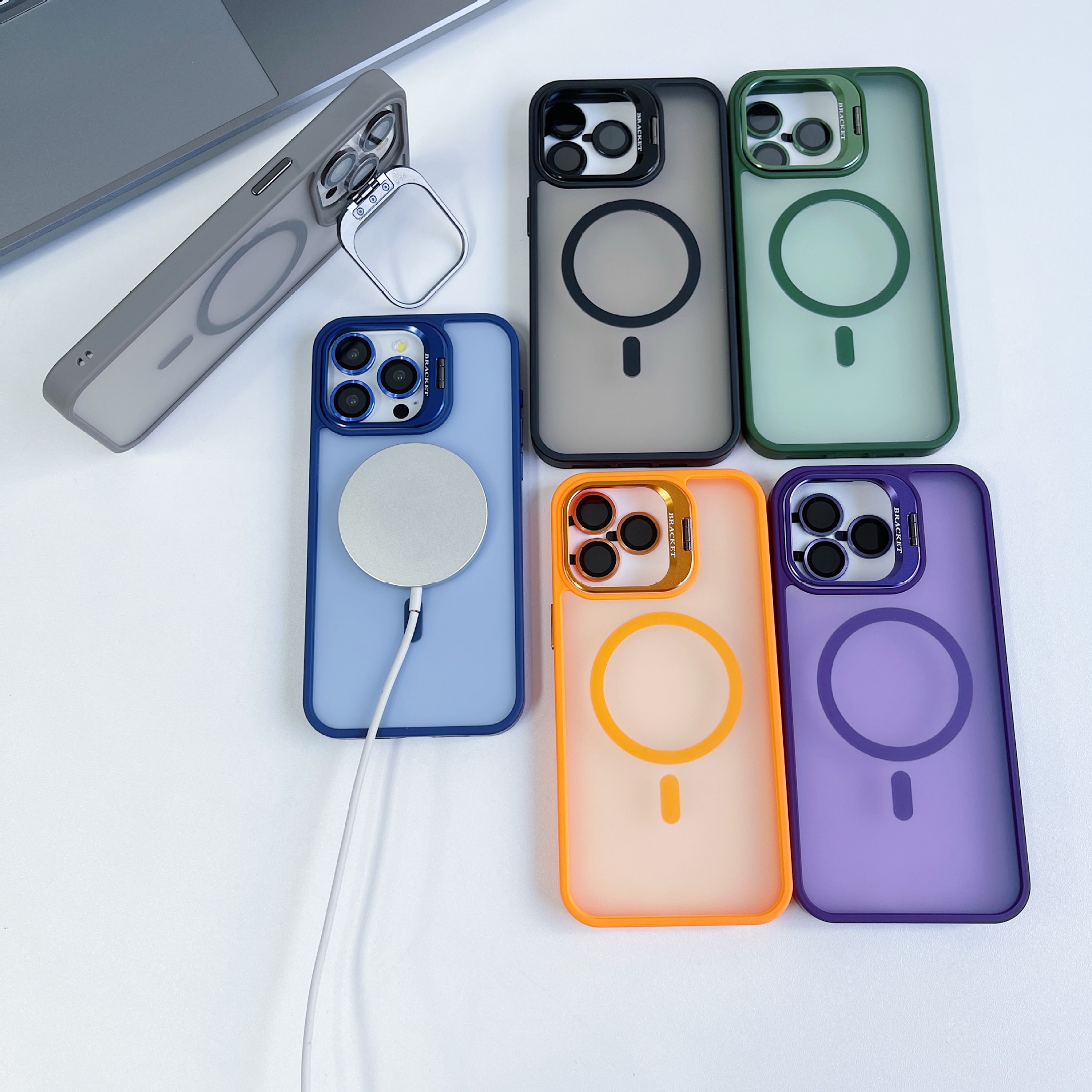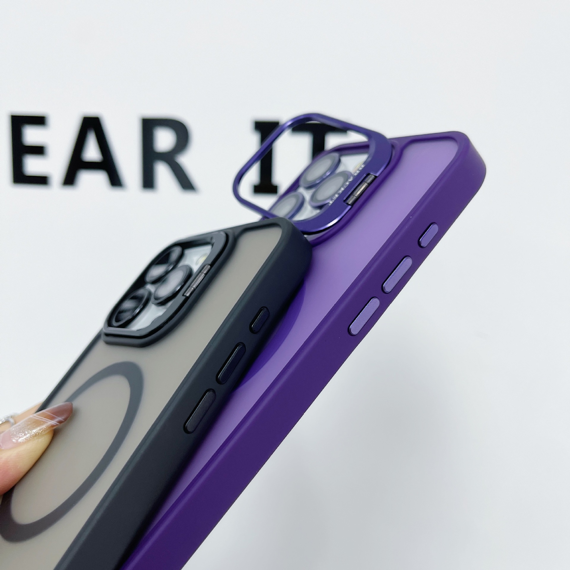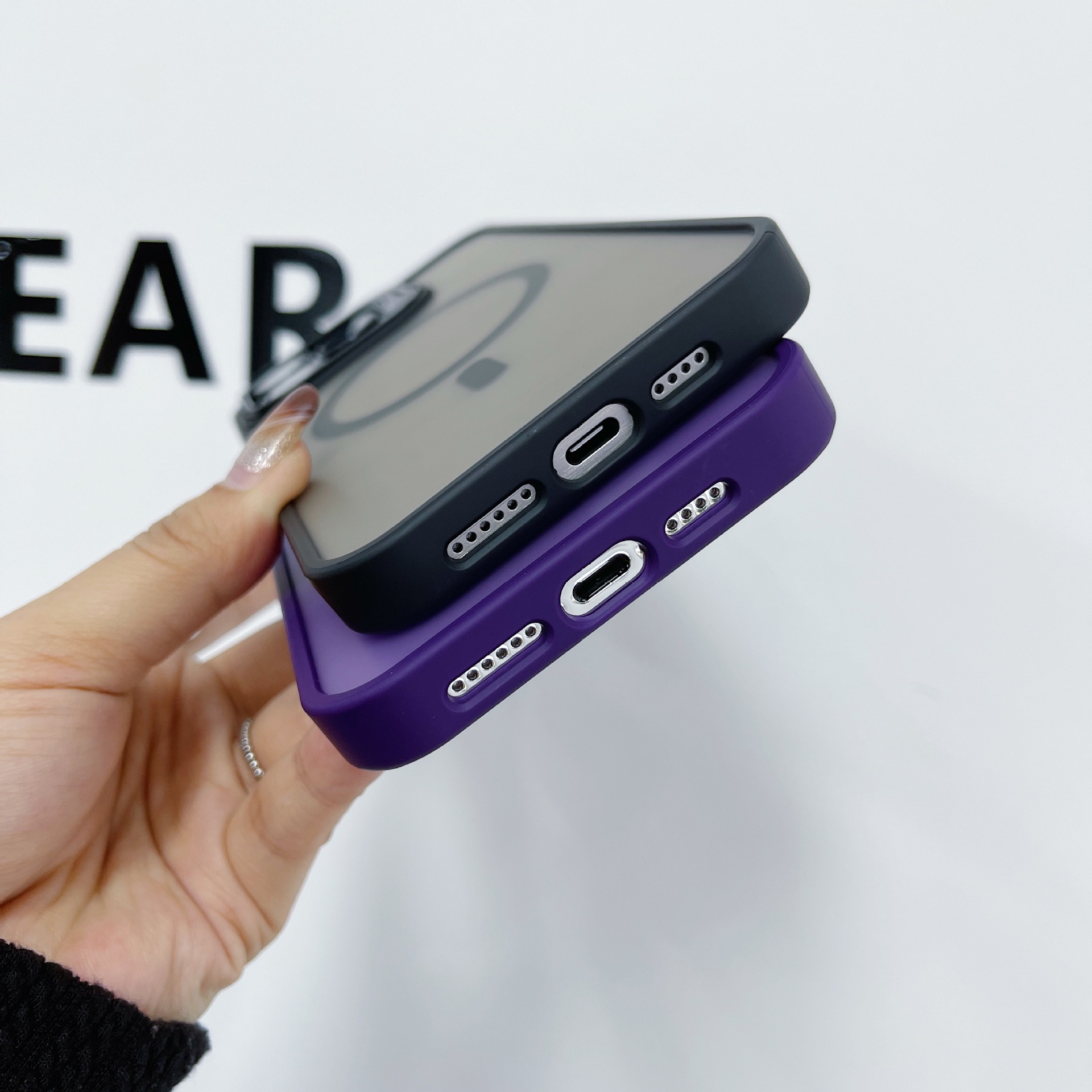 iPhone17Promax 자석 휴대폰 케이스는 Apple 16 피부 느낌의 무광택 13 렌즈 홀더 14 보호 커버에 적합합니다.