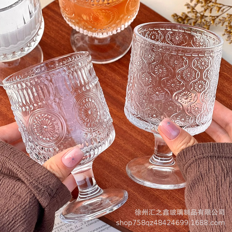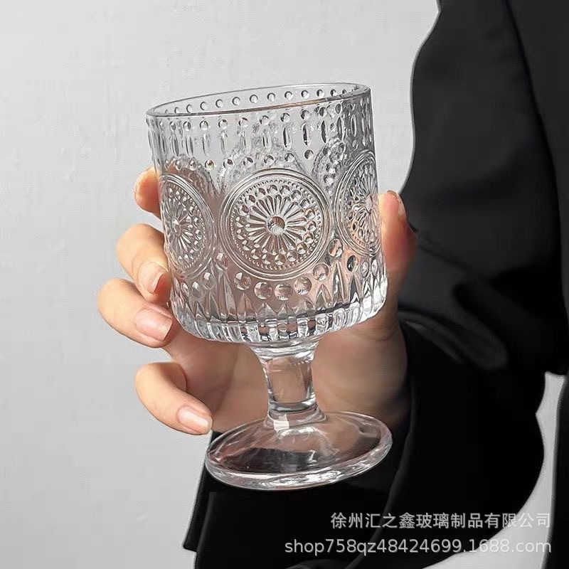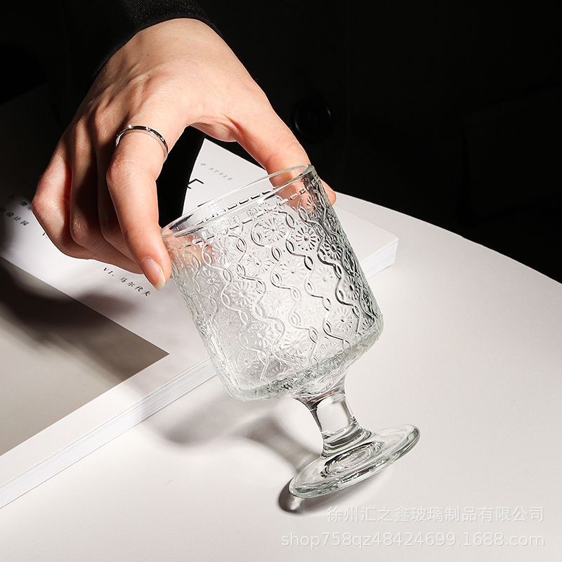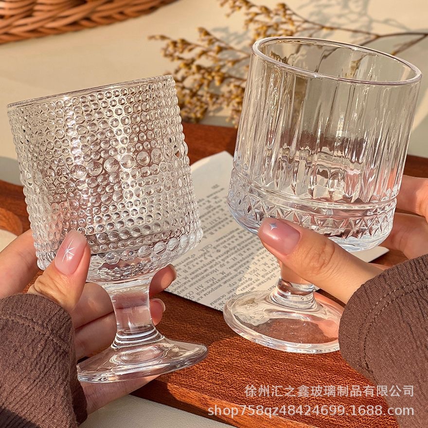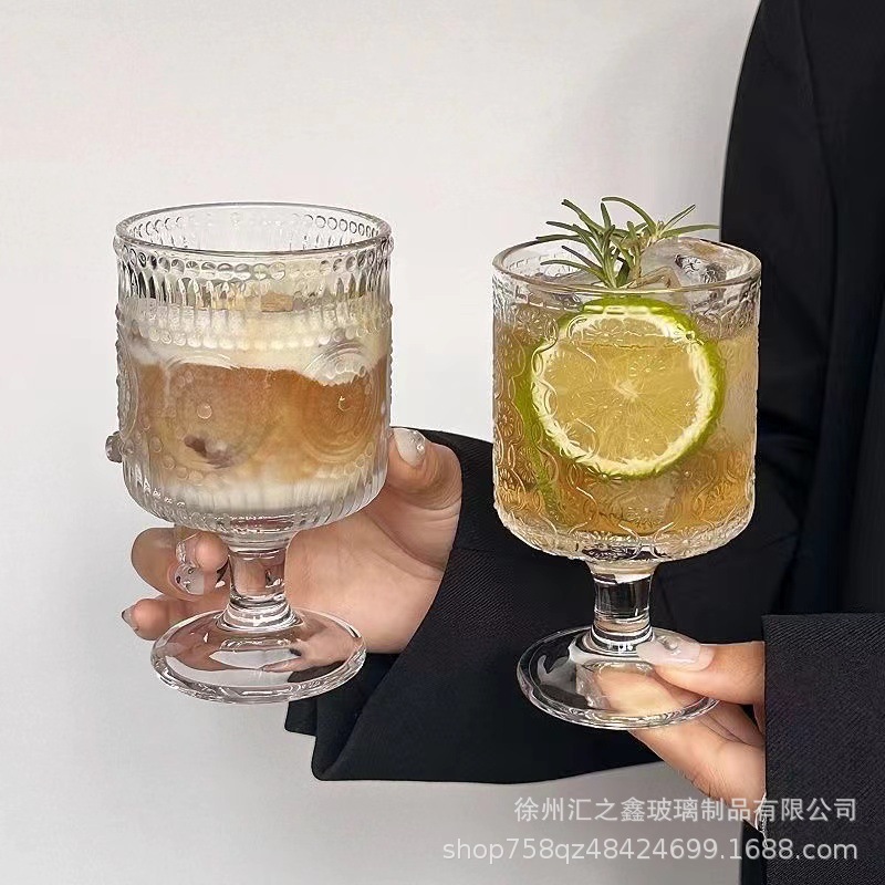 에 수직 줄무늬 유리 잔 높은 모양의 커피 가벼운 고급 레드 와인 유리 우유 차 디저트 아이스크림 컵스토어 가기