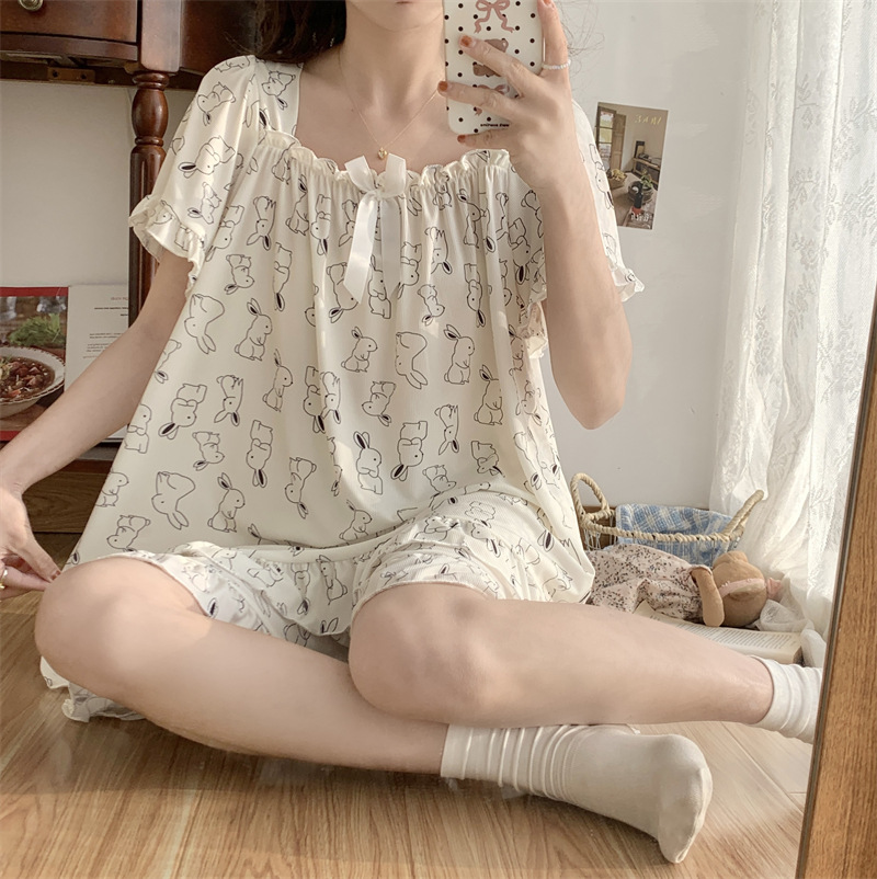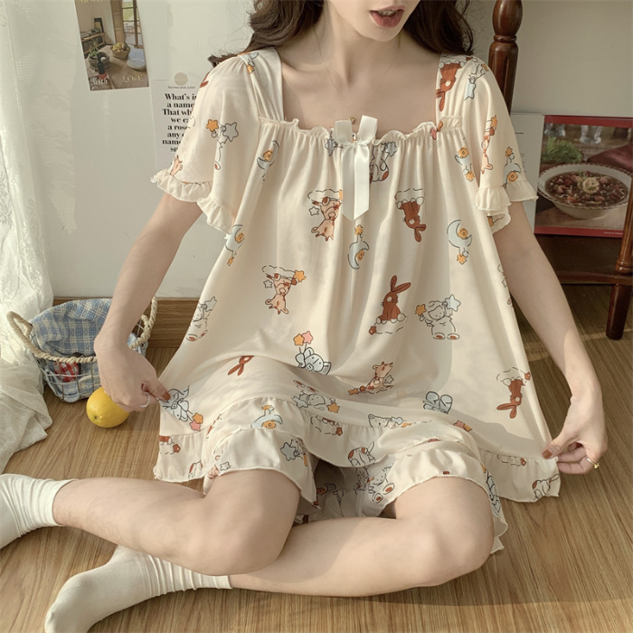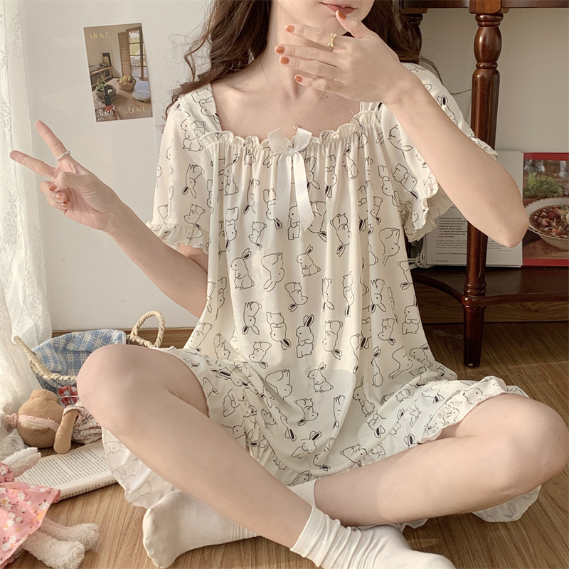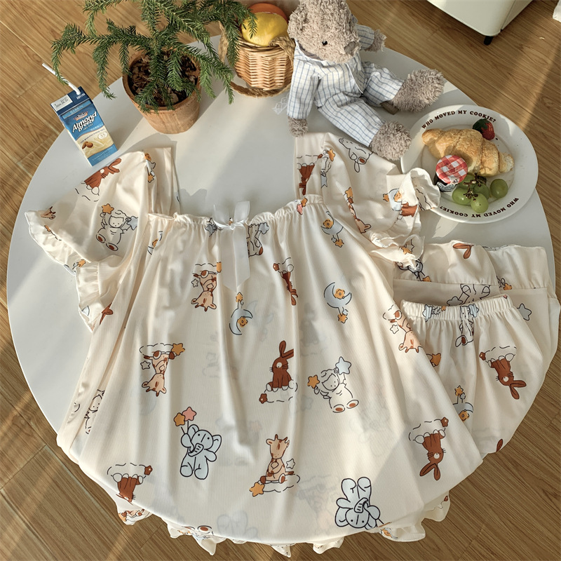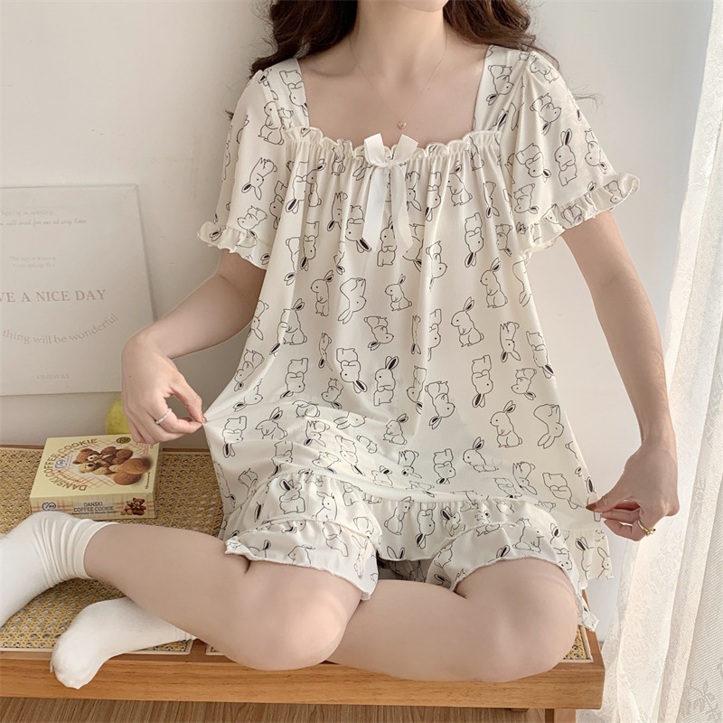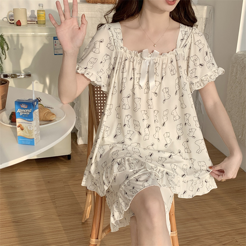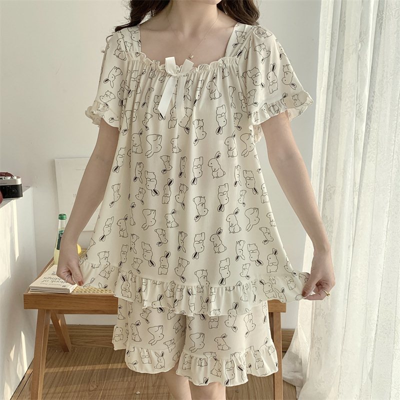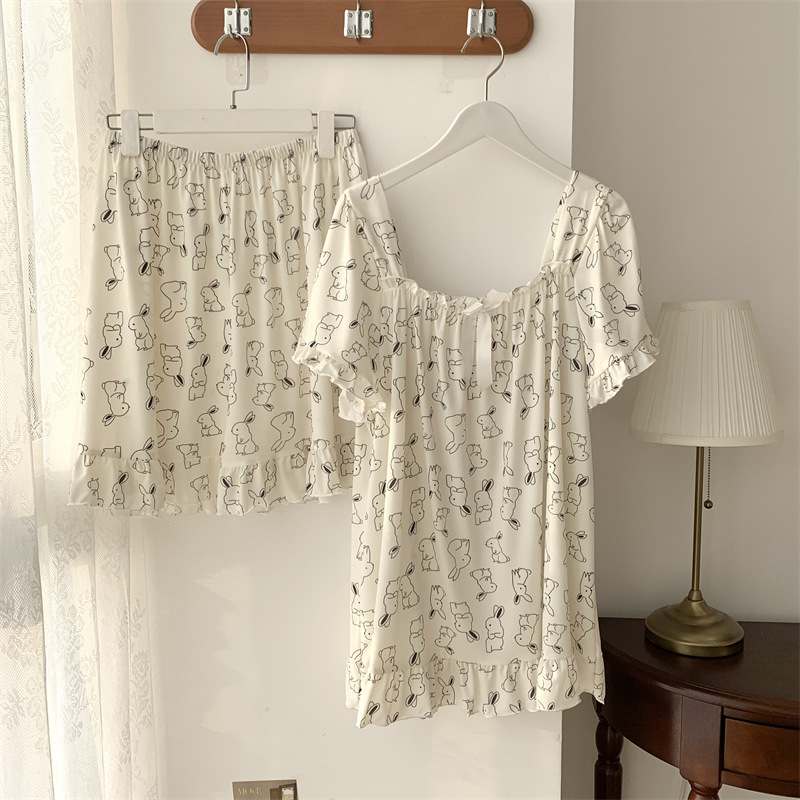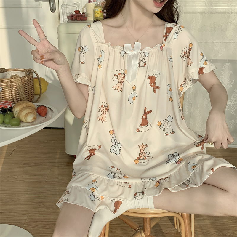 아이스 실크 플러스 사이즈 잠옷 300kg 여성 달콤한 만화 투피스 세트 느슨한 플러스 뚱뚱한 학생 홈 의류 세트 폭발