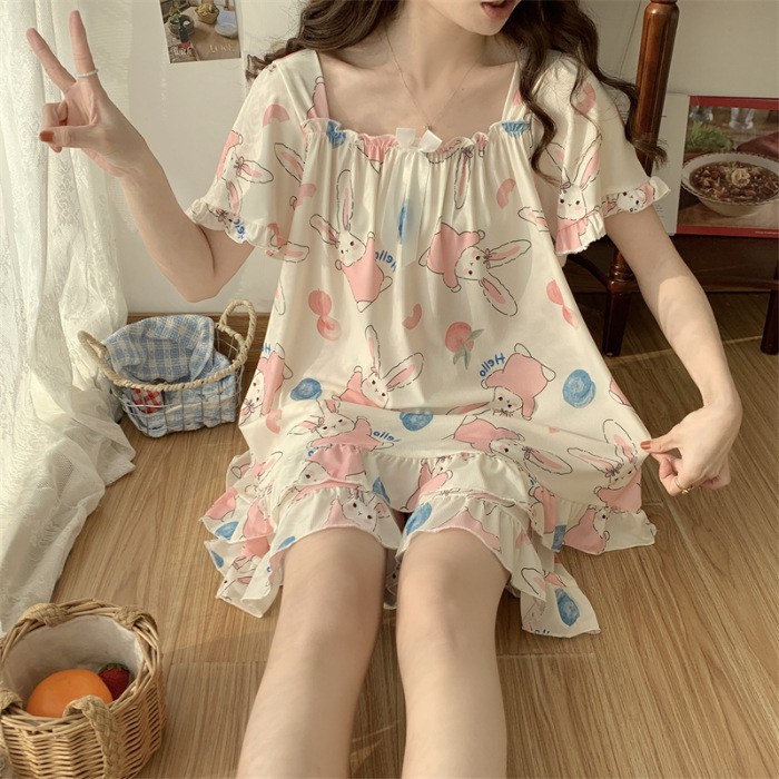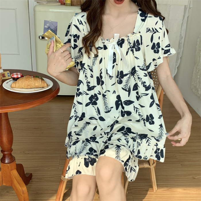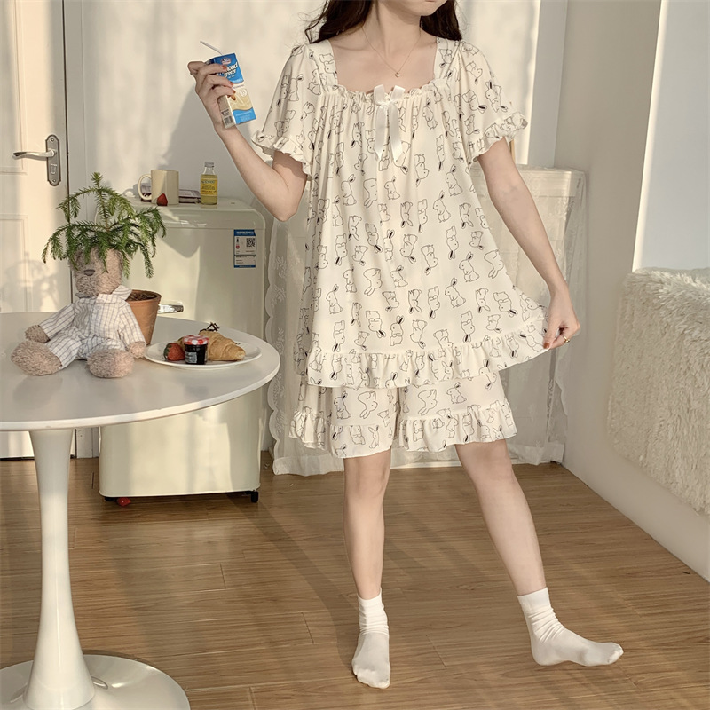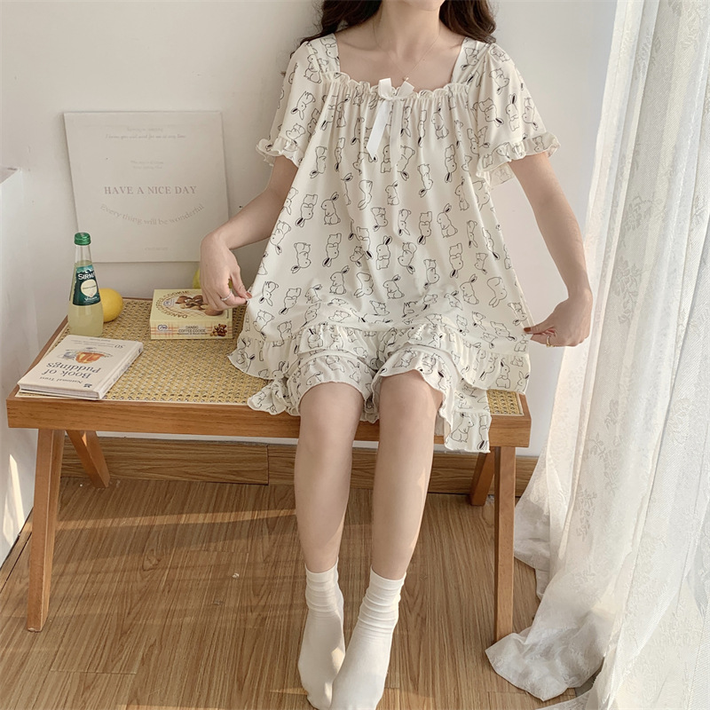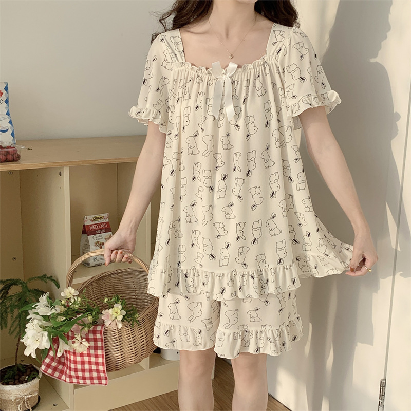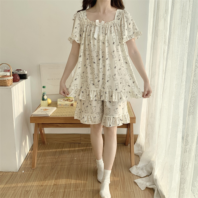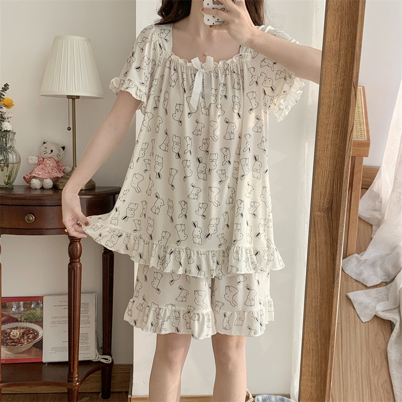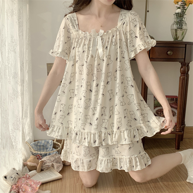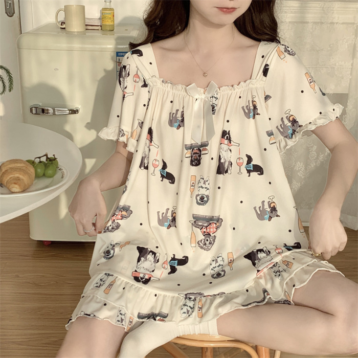 아이스 실크 플러스 사이즈 잠옷 300kg 여성 달콤한 만화 투피스 세트 느슨한 플러스 뚱뚱한 학생 홈 의류 세트 폭발