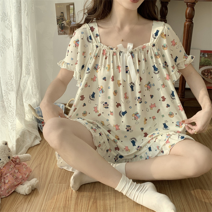 아이스 실크 플러스 사이즈 잠옷 300kg 여성 달콤한 만화 투피스 세트 느슨한 플러스 뚱뚱한 학생 홈 의류 세트 폭발스토어 가기