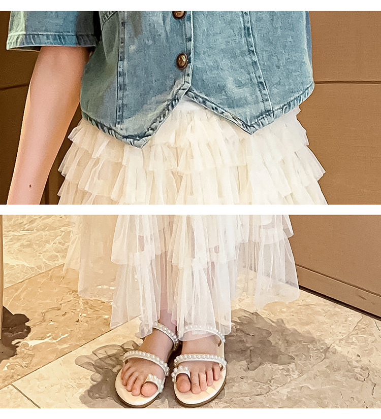 소녀 여름 원피스 세트 2024 새로운 중형 및 대형 어린이 서양식 인터넷 유명 인사 스커트 긴 스커트 데님 옷 투피스 세트스토어 가기