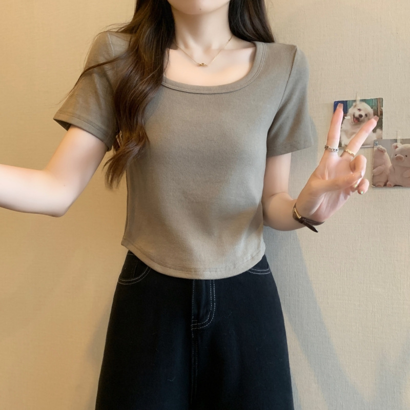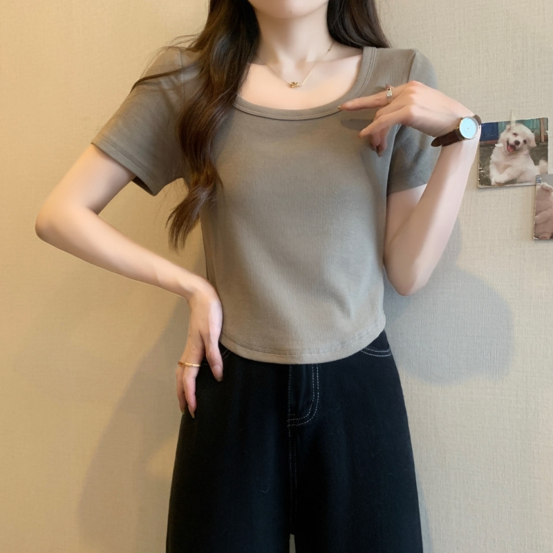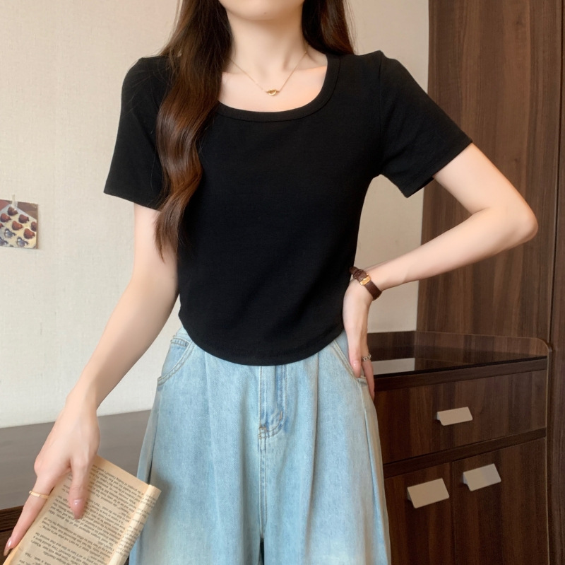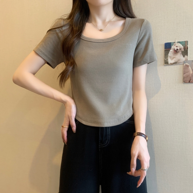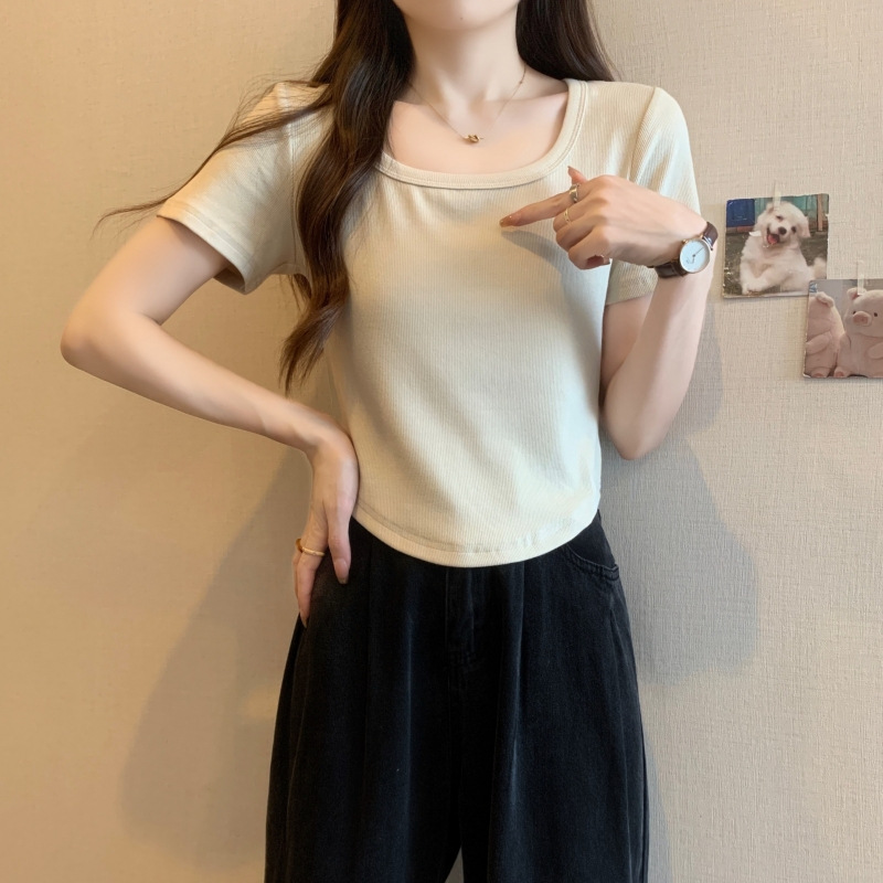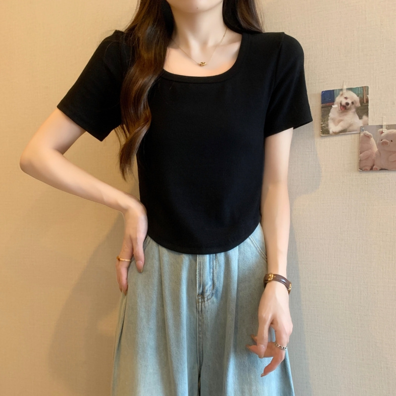 퓨어 코튼 버밍 셔츠 프랑스 달콤하고 매운 스퀘어 칼라 반팔 티셔츠 여성을위한 2024 여름 새로운 간단한 올 매치 캐주얼 탑스토어 가기