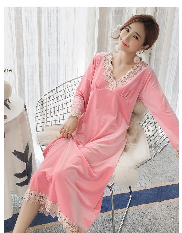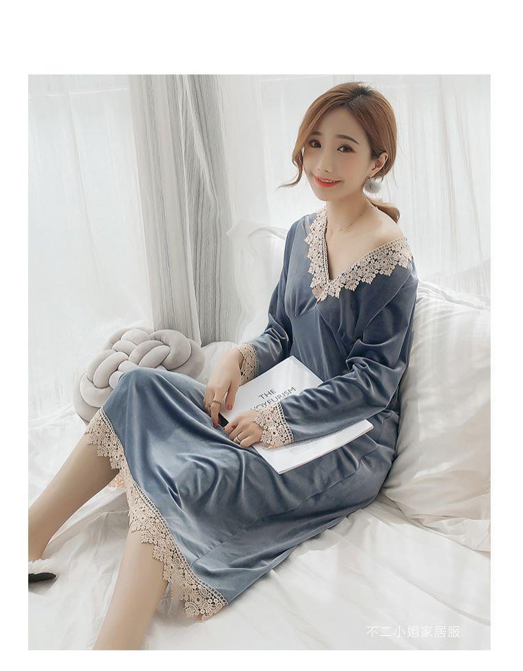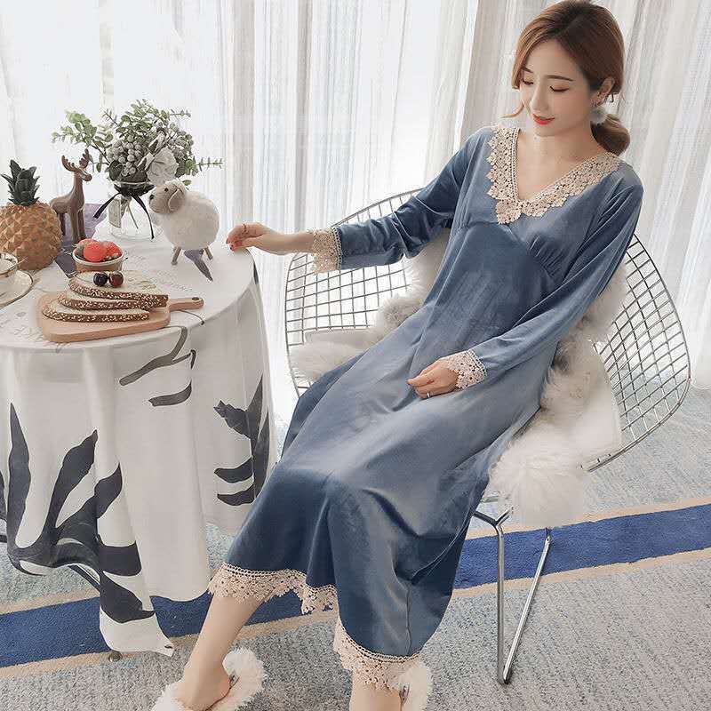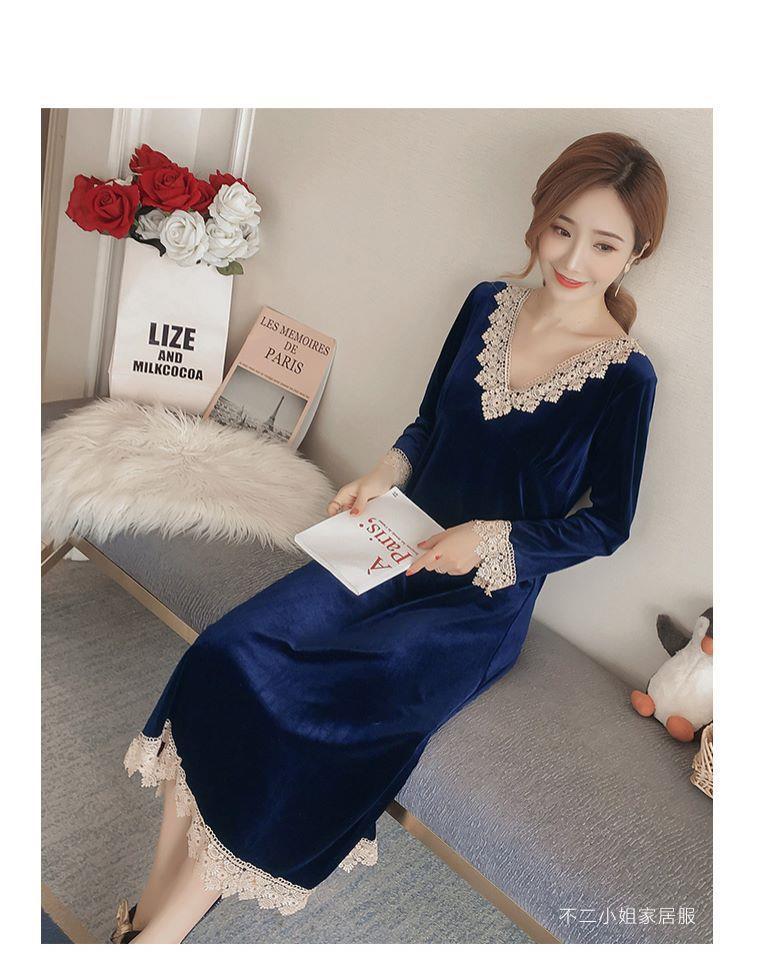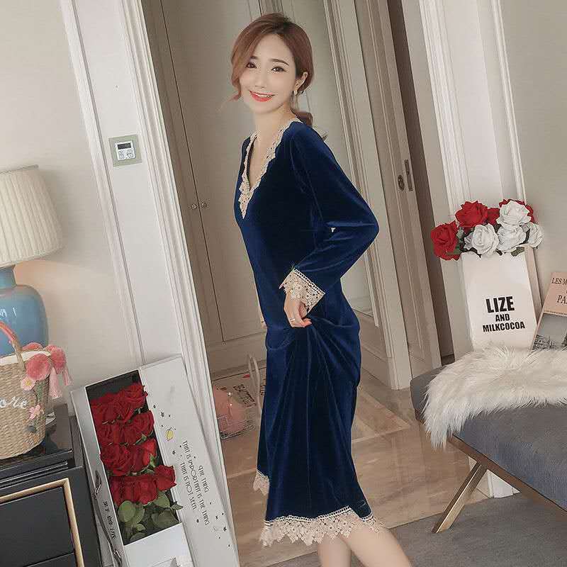 플러스 사이즈 5XL 잠옷 여자 겨울 황금 벨벳 한국 플러스 긴 원피스 긴 소매 섹시한 럭셔리 벨벳 봄 가을과 겨울스토어 가기